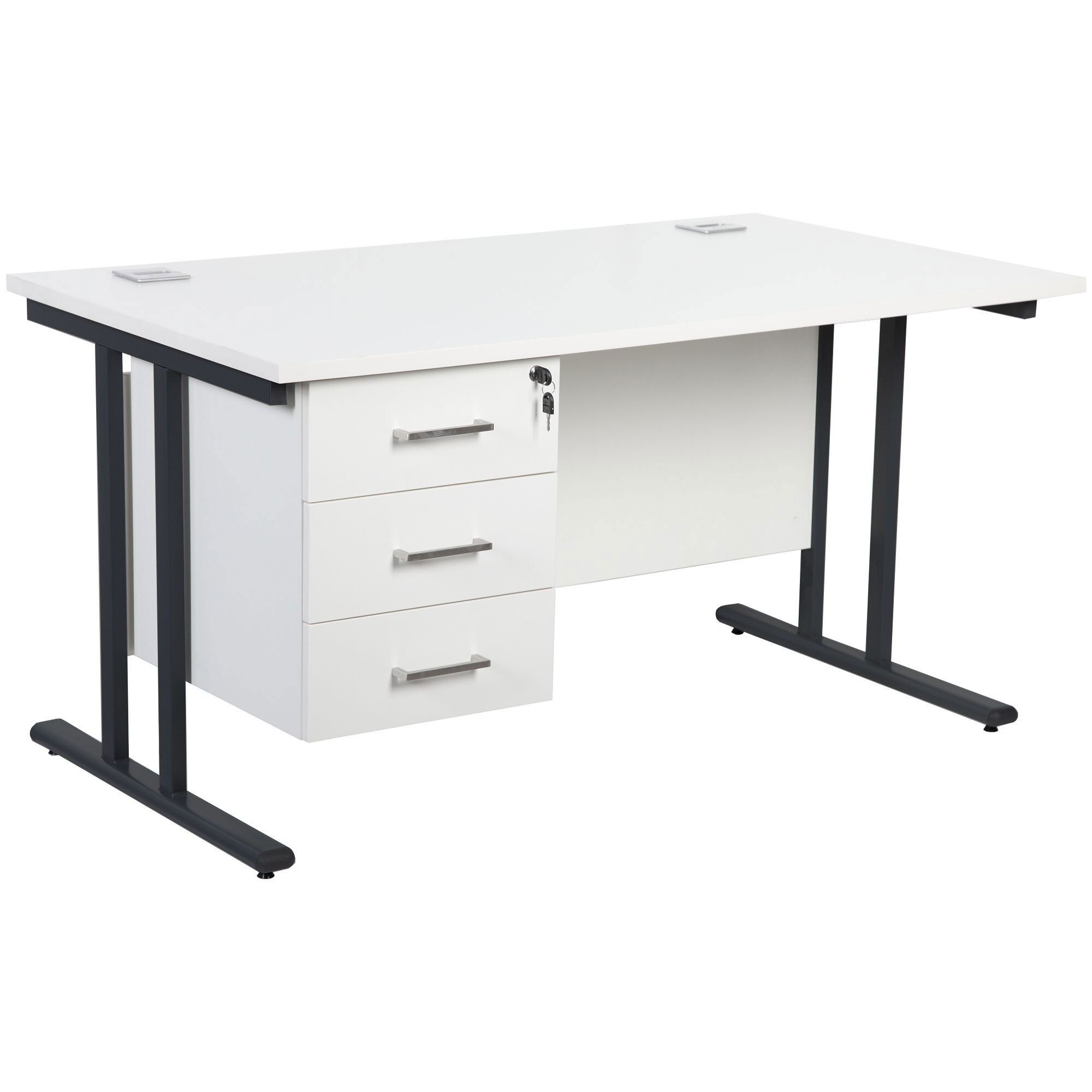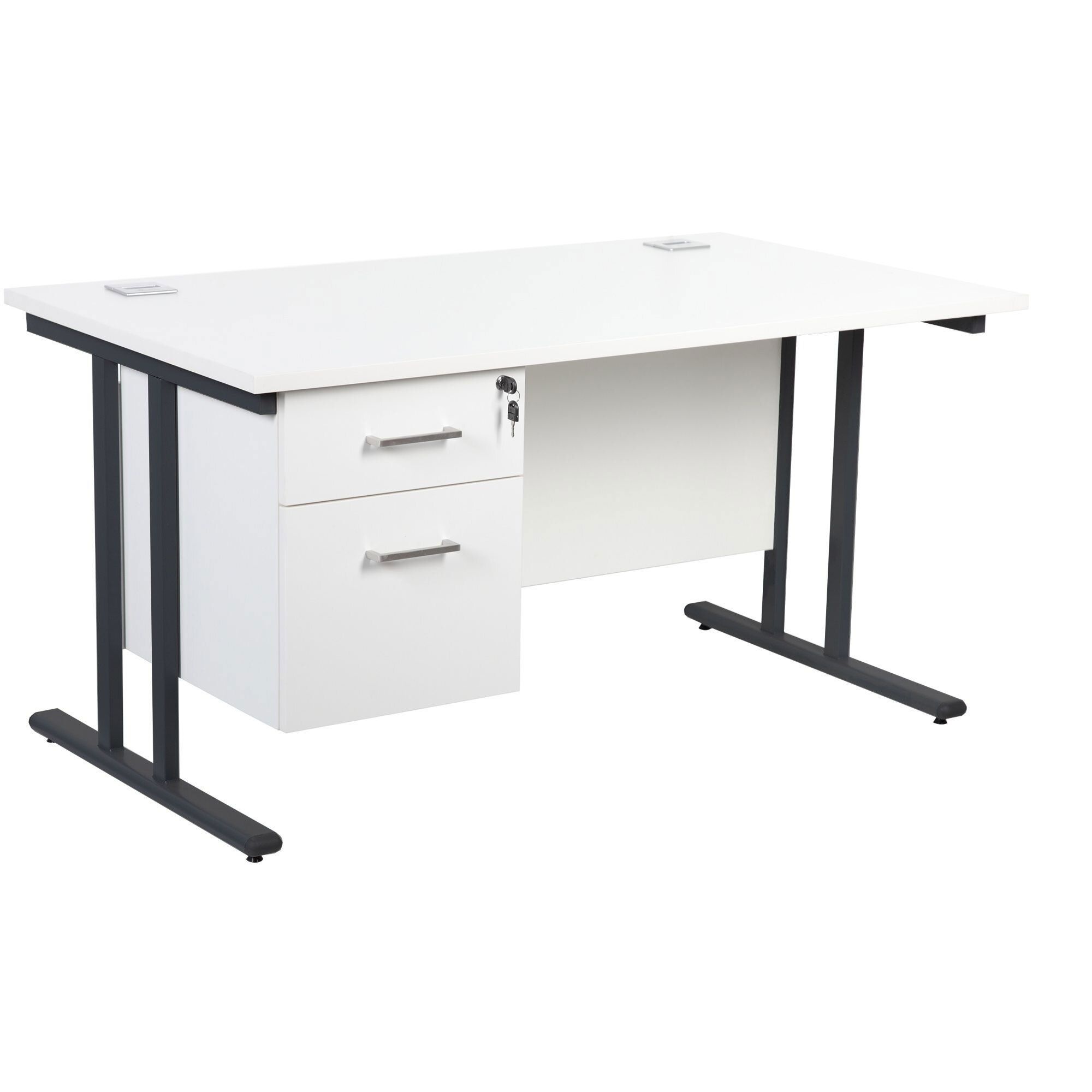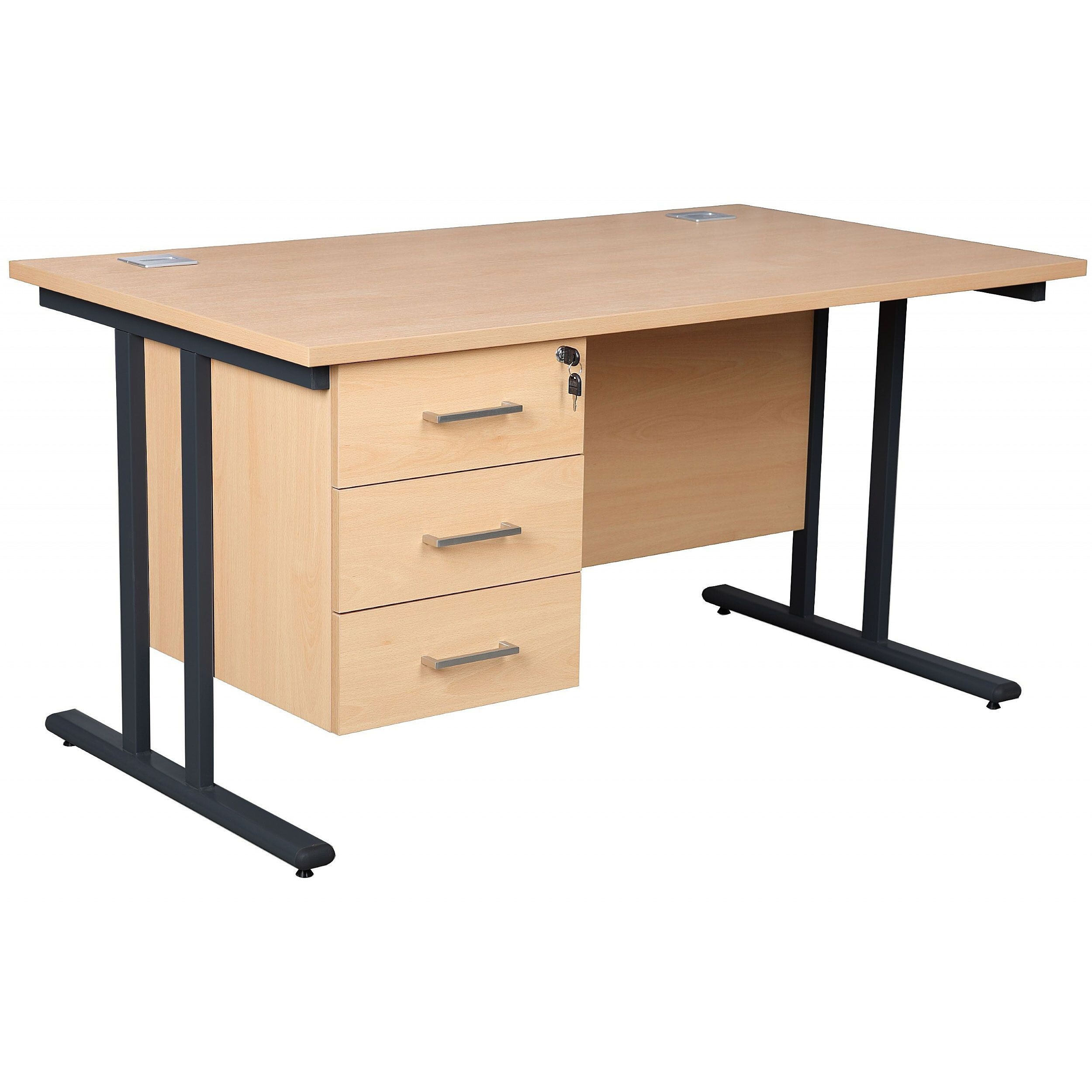 Presenting the best in affordable office desks with the Horizon family of office furniture. Partner desks with Horizon office storage to create a harmonised space that looks fantastic. Horizon deluxe rectangular desks are stylish, functional, sturdy and they look great too. Rectangular tops are paired with a twin cantilever frame for even more strength and the desks come with cable access to help keep wires and cables neat and under control. This model comes with one drawer pedestal to store all of your office essentials. Horizon office desks work well in office workspaces and in the home office. This reliable office furniture arrives quick as a flash with next day delivery and it comes with a 2 year manufacturers guarantee for complete peace of mind.Details