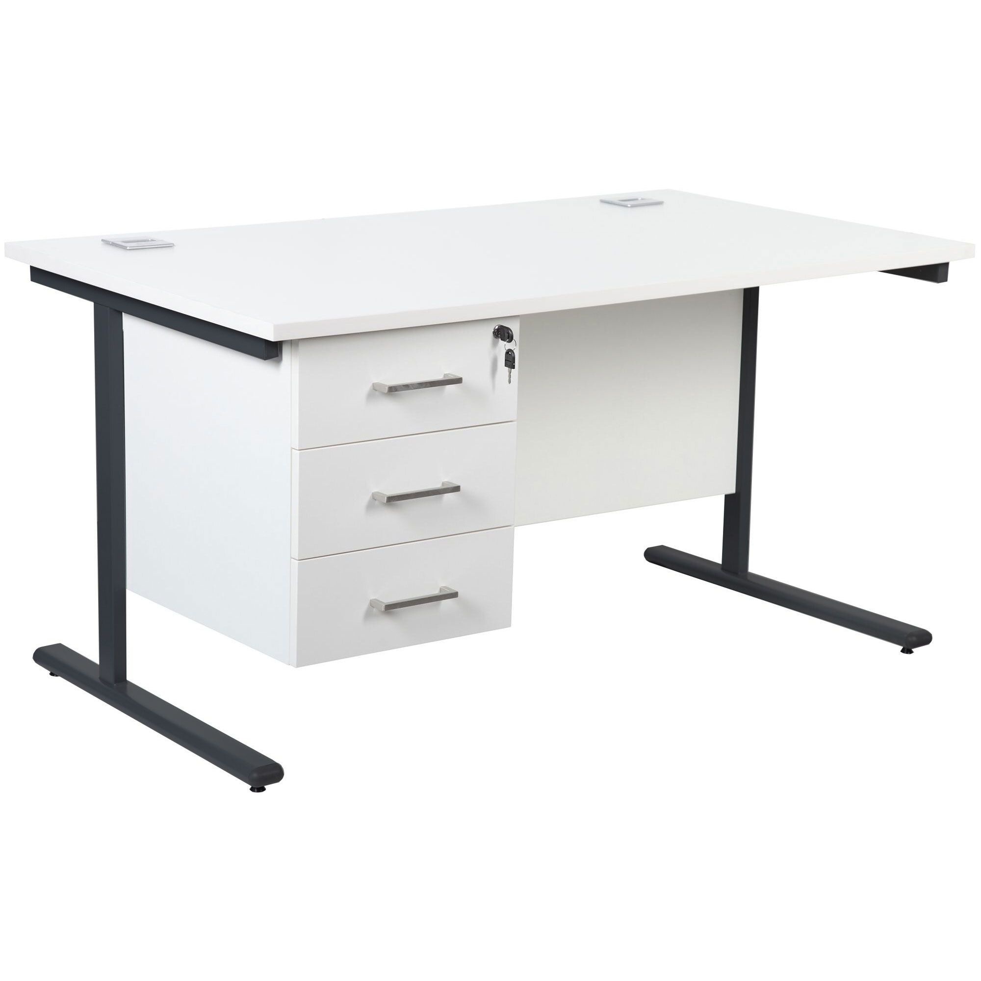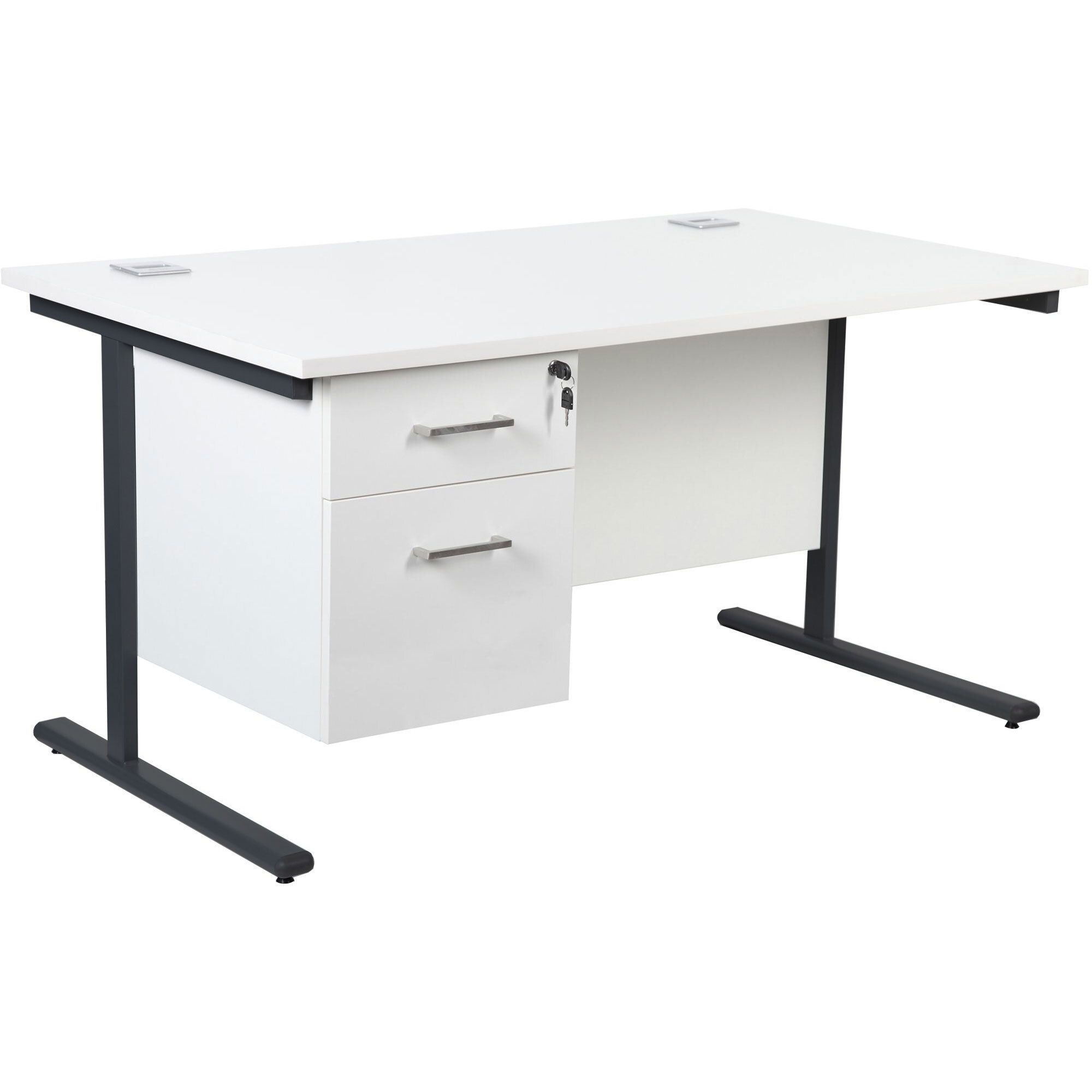 Presenting the best in affordable office desks with the Horizon family of office furniture. Partner desks with Horizon office storage to create a harmonised space that looks fantastic. Horizon rectangular desks are simple, functional, sturdy and they look great too. Rectangular tops are paired with a simple cantilever frame and the desks come with cable access to help keep wires and cables neat and under control. This model comes with one drawer pedestal to store all of your office essentials. Horizon office desks work well in office workspaces and in the home office. This reliable office furniture arrives quick as a flash with next day delivery and it comes with a 2 year manufacturers guarantee for complete peace of mind.Details
