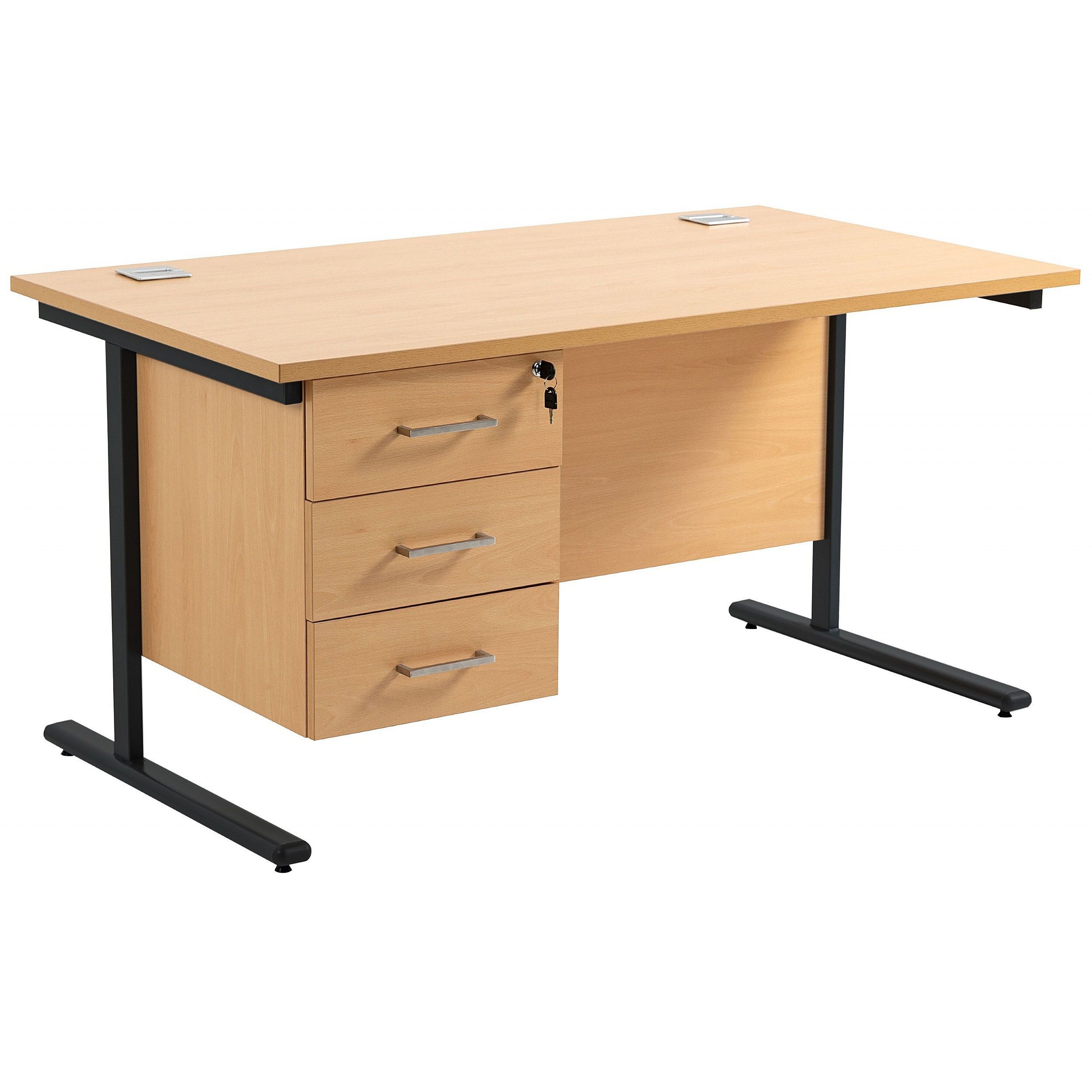 Horizon Rectangular Cantilever Office Desks With Single Fixed Pedestal