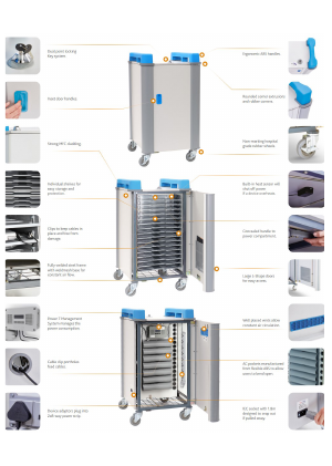 - Store laptops securely and charge them up ready for the next day with LapCabby 16H horizontal compact laptop charge and storage trolley.