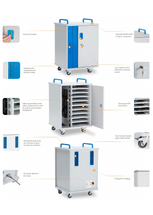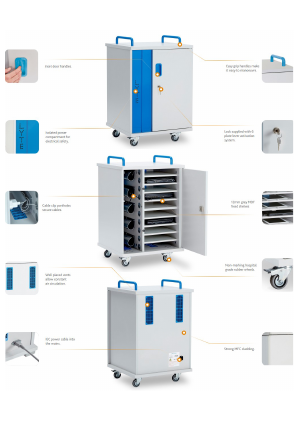 - Store tablets securely and charge ready for the next day with the LapCabby lyte 10H horizontal laptop charging and storage trolley.