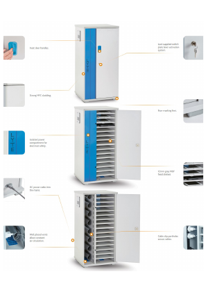 NB: It is important to check the device size being stored, including the AC adapter and power cable for compatibility with the compartments. If in doubt, please contact us for assistance.