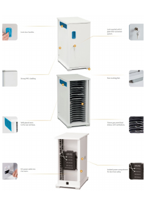 - Store devices securely and charge them up ready for the next day with LapCabby lyte 20H single door tablet charging and storage cabinet.