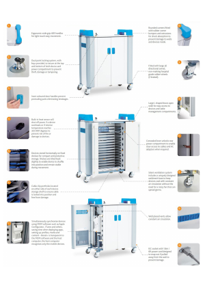 - Store and charge tablets securely with the LapCabby tab 32H horizontal charging and sync trolley, designed to ensure your devices are ready for the next day.