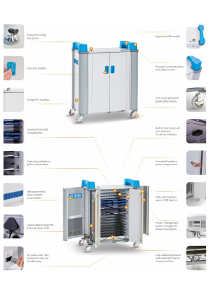 - Store devices securely and charge them up ready for the next day with LapCabby tab 32H horizontal tablet charge and storage trolleys.