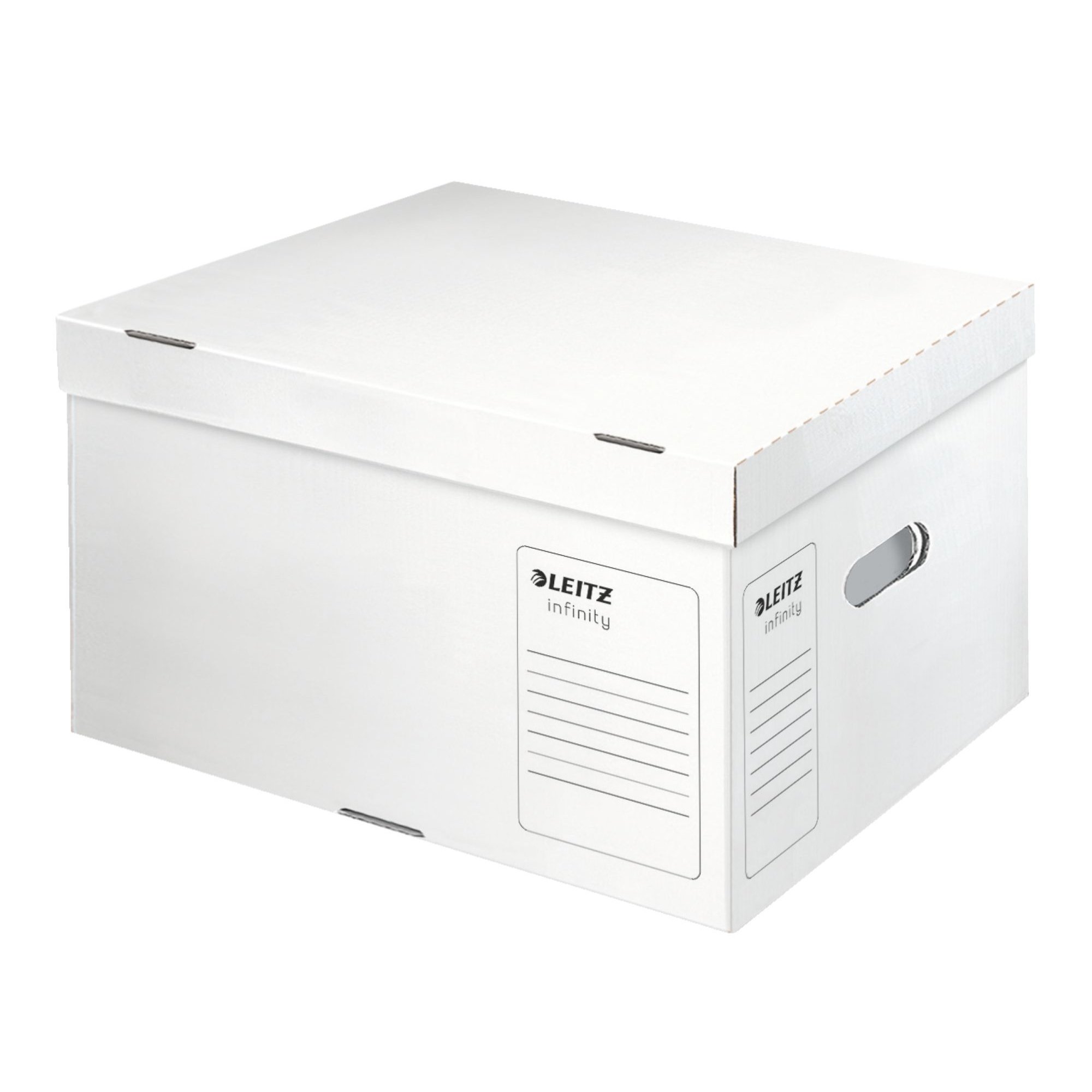 Designed for long term preservation and professional archiving, the Leitz Infinity Large Archiving Storage Box offers a spacious, acid free solution for safeguarding important documents. Made from virgin corrugated board and certified FSC®, it’s trusted by national archives, libraries, and museums for its durability and archival integrity. With a fast assembly design, reinforced structure, and clean white finish, it combines strength, simplicity, and sustainability in one reliable package.Details