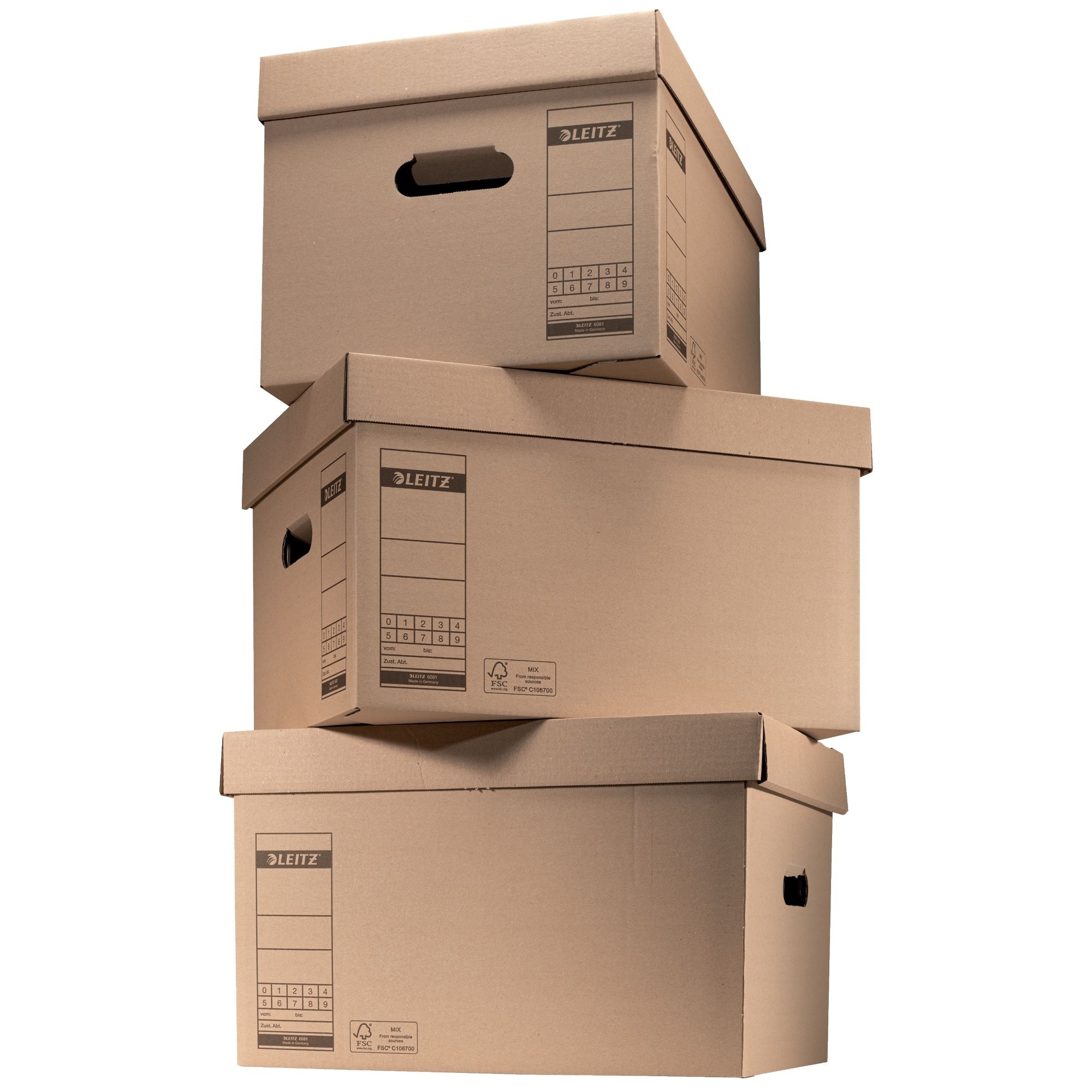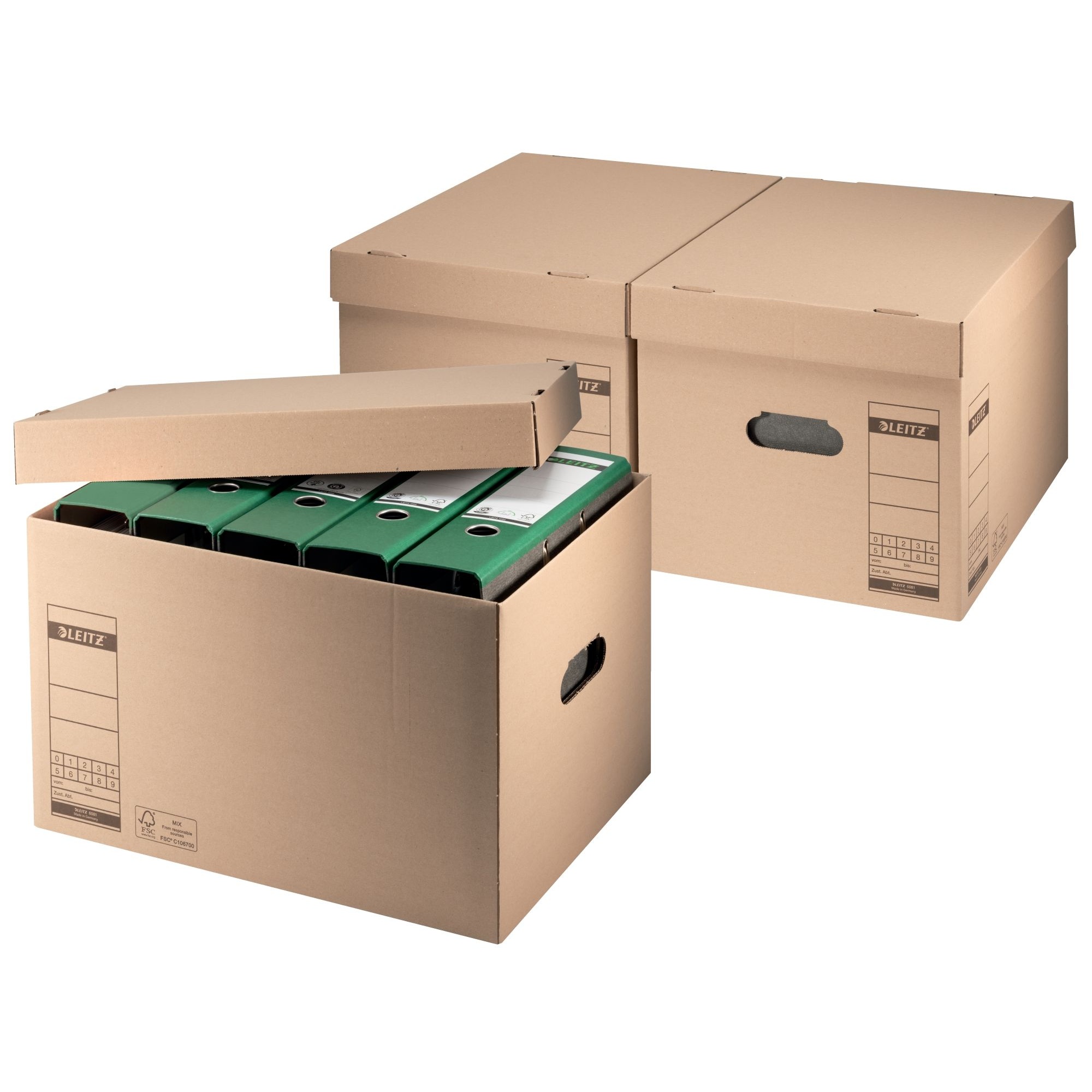 Designed for durability and ease, the Leitz Premium Archiving Storage Box offers a robust, eco-conscious solution for storing and moving important documents. Crafted from high-quality corrugated cardboard, this foldable, FSC® certified box holds up to four wide A4 binders or seven narrow ones, making it ideal for office archiving, home organisation, or secure transport. With reinforced sides, a secure top lid, and a lightweight build, it combines strength and convenience in one recyclable packageDetails
