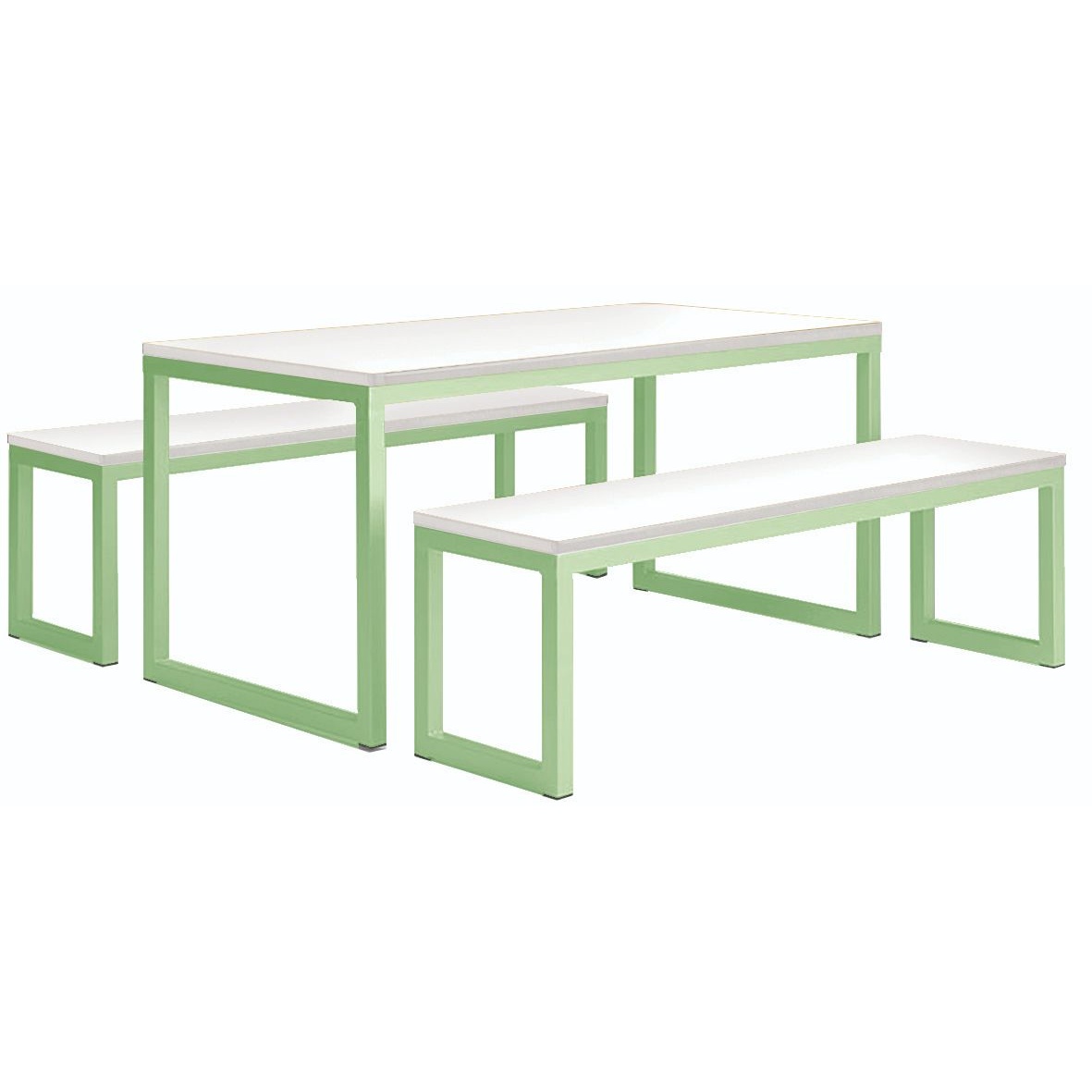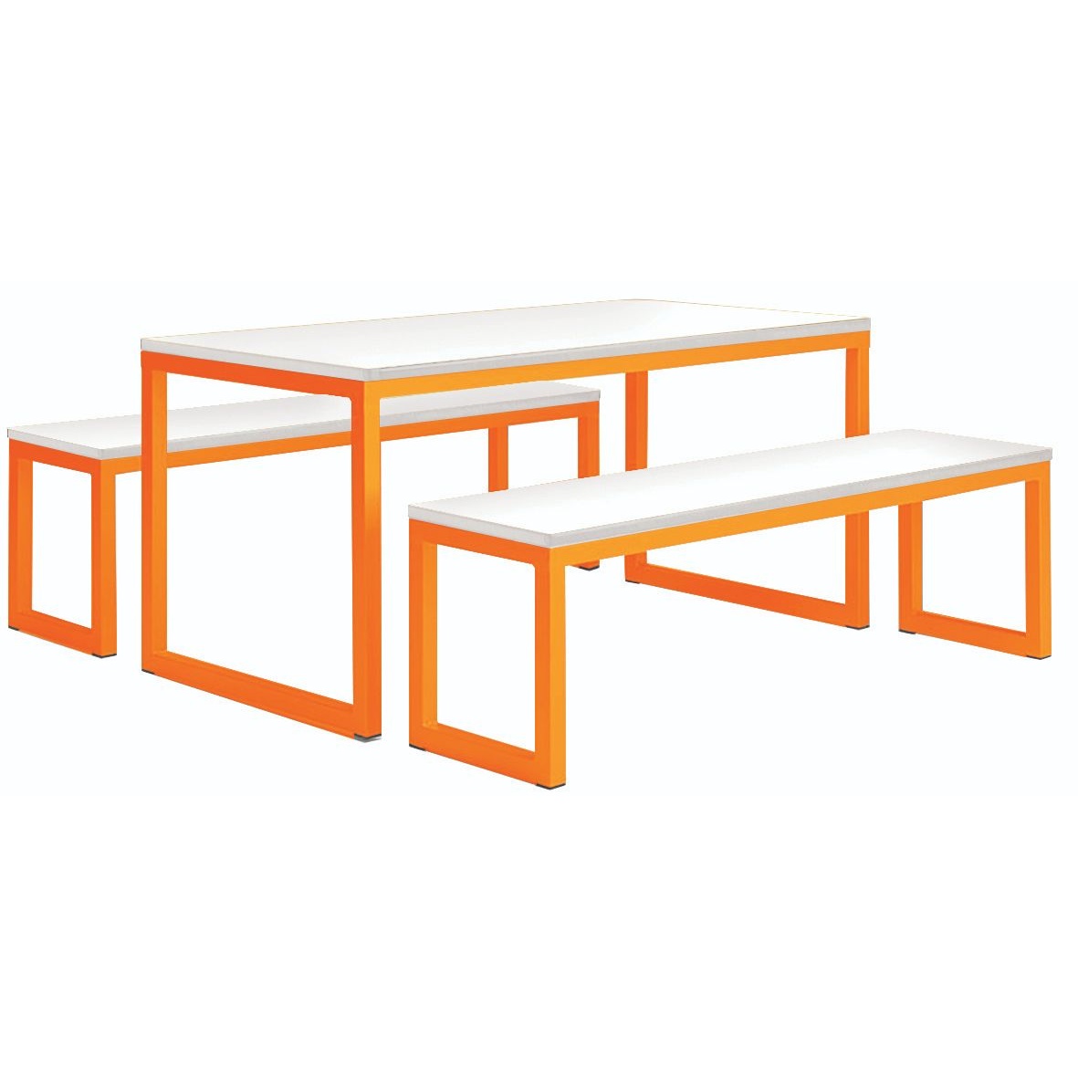 Manger Hoop Leg Dining Table and Bench Sets offer an all in one solution for group dining in a range of establishments. Designed with simplicity and practicality in mind, these units are ideal for various dining environments, including offices, educational institutions, healthcare facilities, and more. Bench style seats are paired with a robust frame and durable tabletop for a user friendly dining experience. Offered in a range of edge and top colours to suit any environment. For peace of mind, these canteen units come with a 5 year UK manufacturers guarantee so you can enjoy years of reliable use.Details