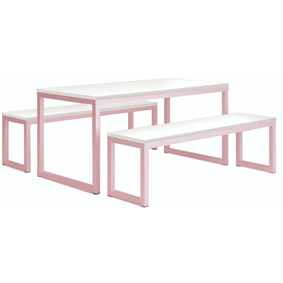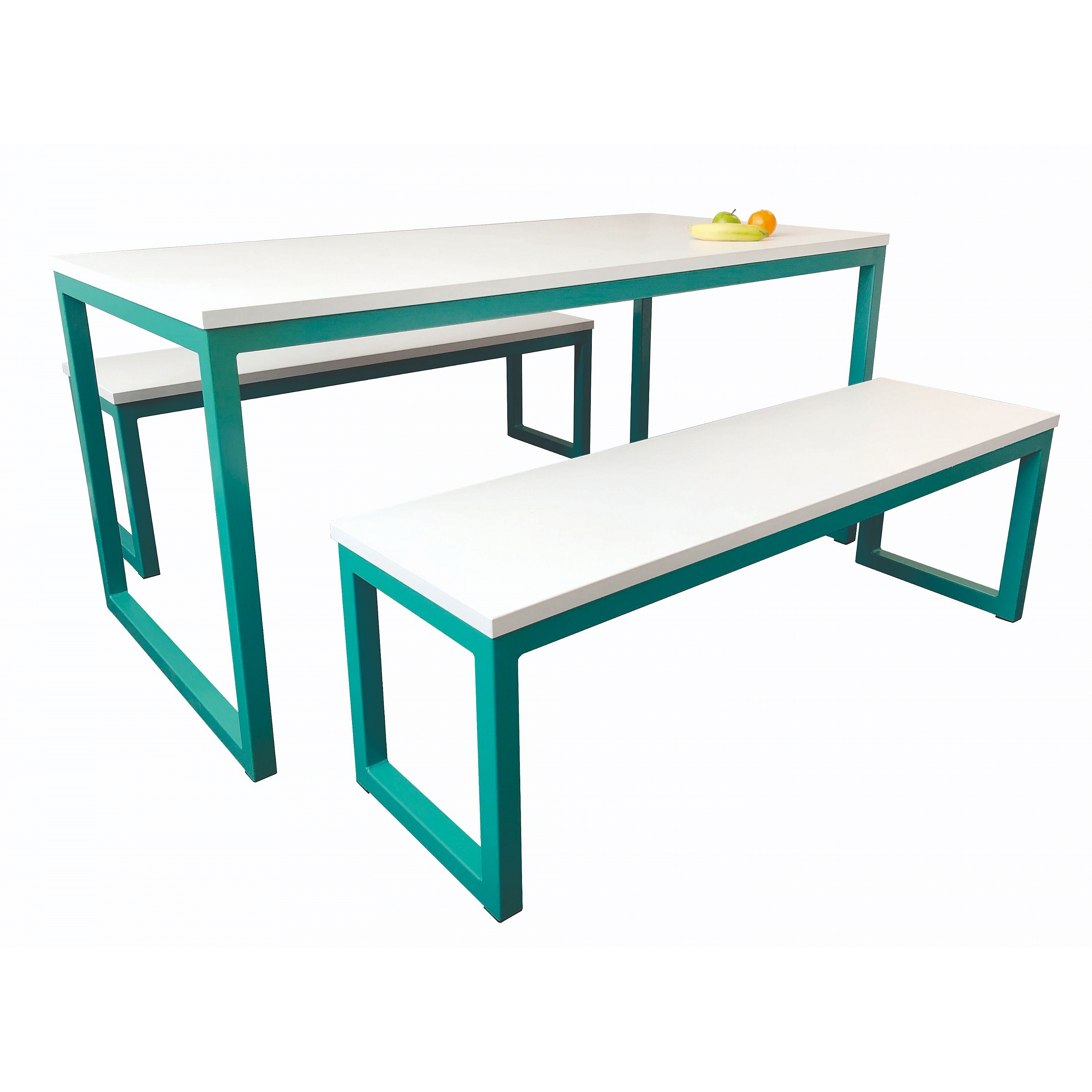 - One set includes one table and two benches.