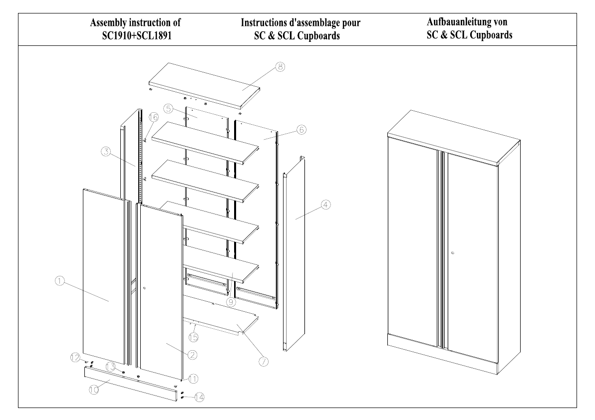 - The cupboards are supplied complete with height adjustable metal shelves.