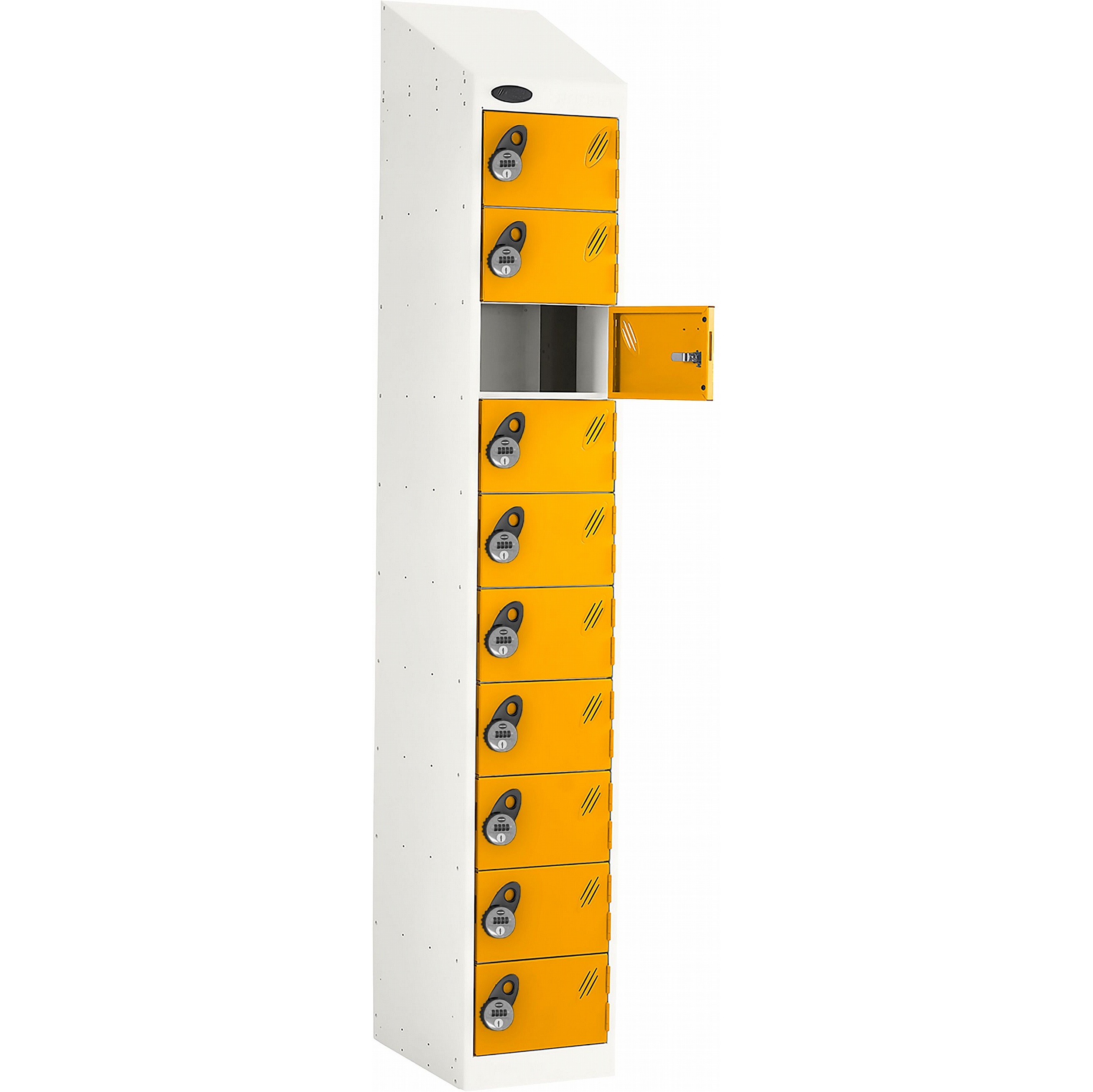 - The sloping top keeps the area tidy by making cleaning easier and preventing items from being placed and left on top of the locker.