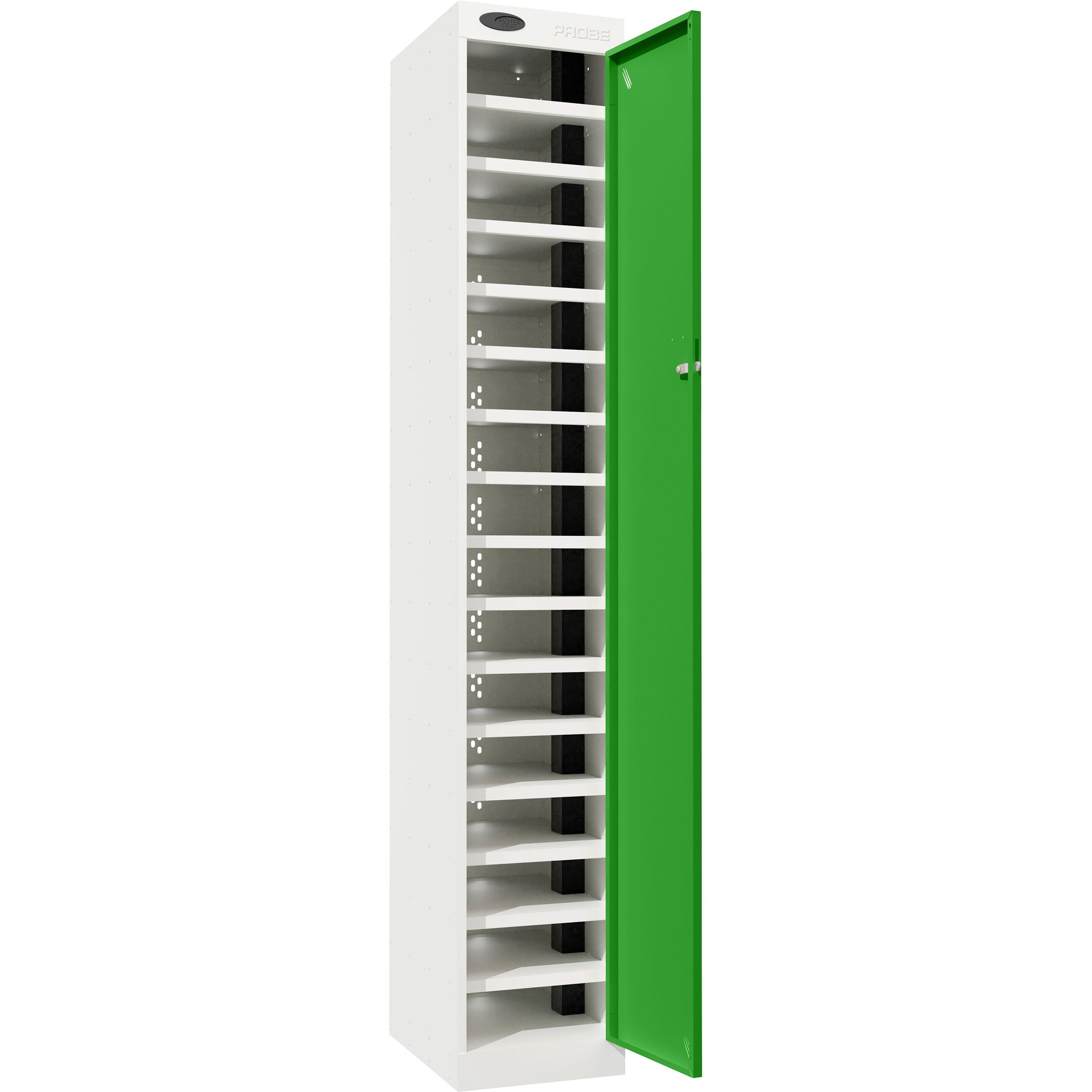 The Stellar PowerBox charging cupboards from Probe are designed to provide a secure and reliable solution for charging a wide range of electronic devices, including laptops, tablets, smartphones, radios, and body cameras, in both workplace and educational settings. Each compartment supports your choice of power delivery, with all contents secured behind a single large door. Perfect for use in universities, schools, warehouses, offices, test centres, and medical institutions. Manufactured in the UK, the Stellar PowerBox features ActiveCoat antibacterial powder coating, making it ideal for environments with the most stringent hygiene requirements. ActiveCoat inhibits the growth and transfer of harmful bacteria, mould, fungi, and algae, helping to maintain a clean and safe environment. And, for peace of mind, these cupboards include a 7-year manufacturers guarantee.Details