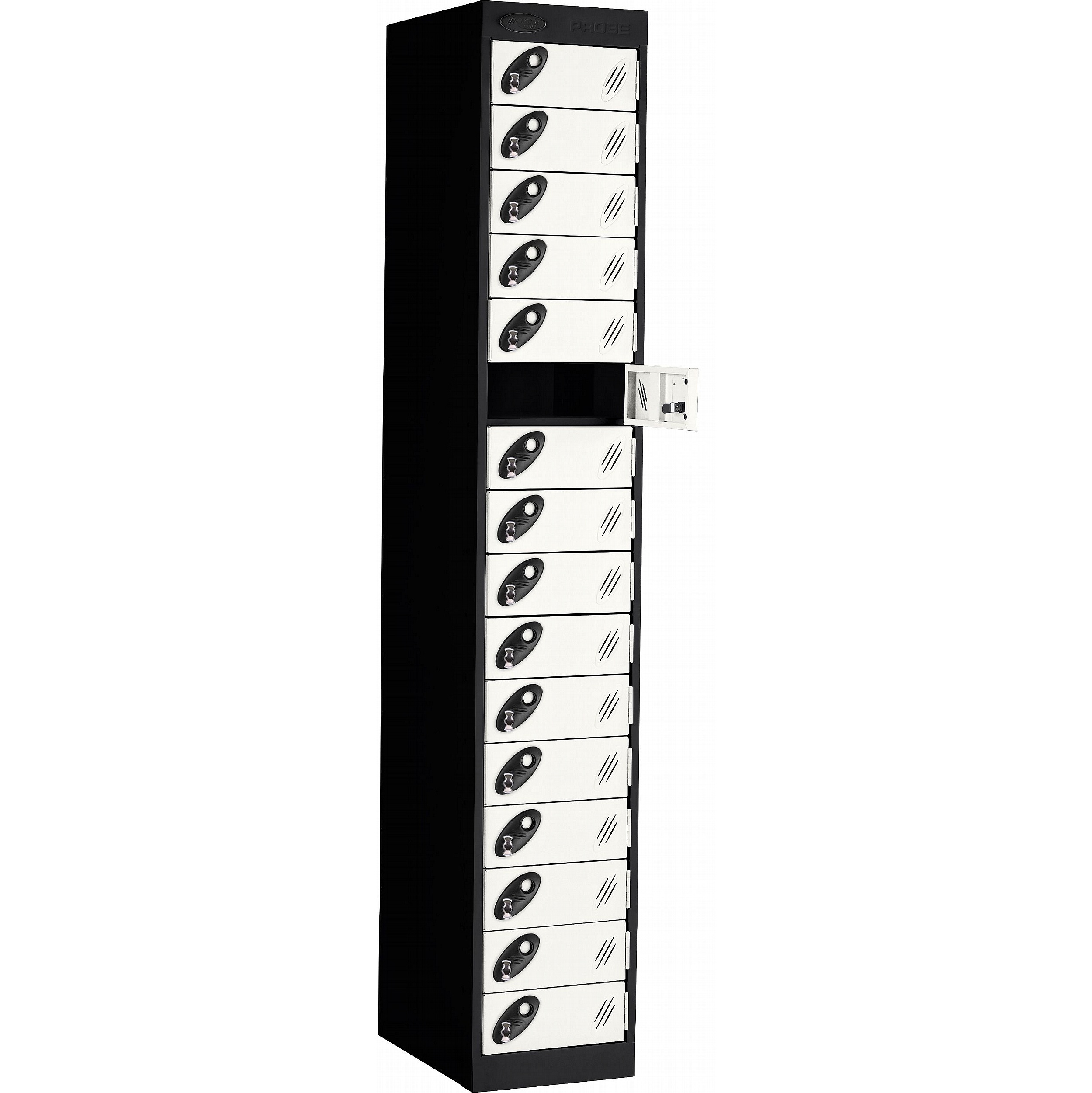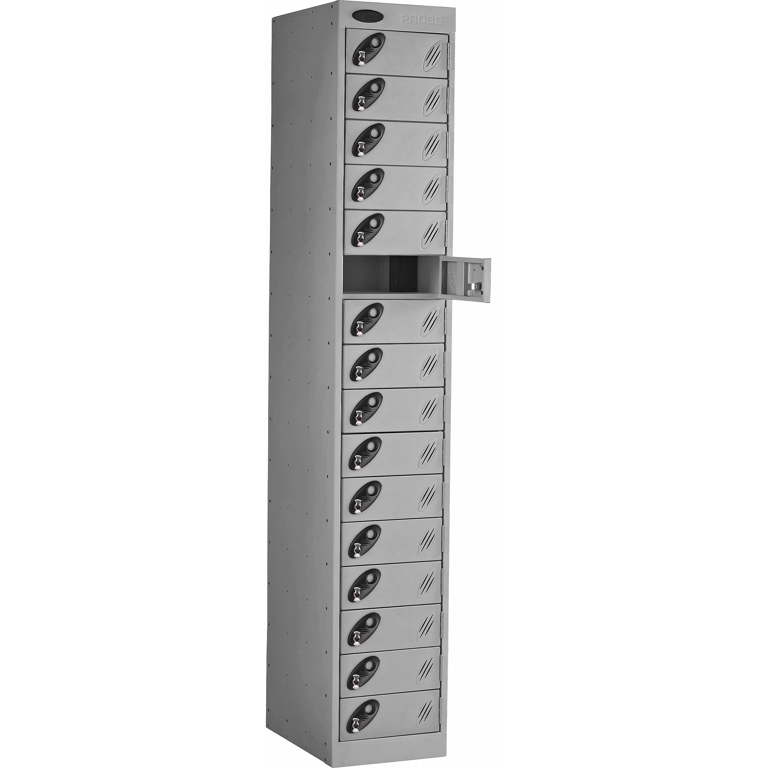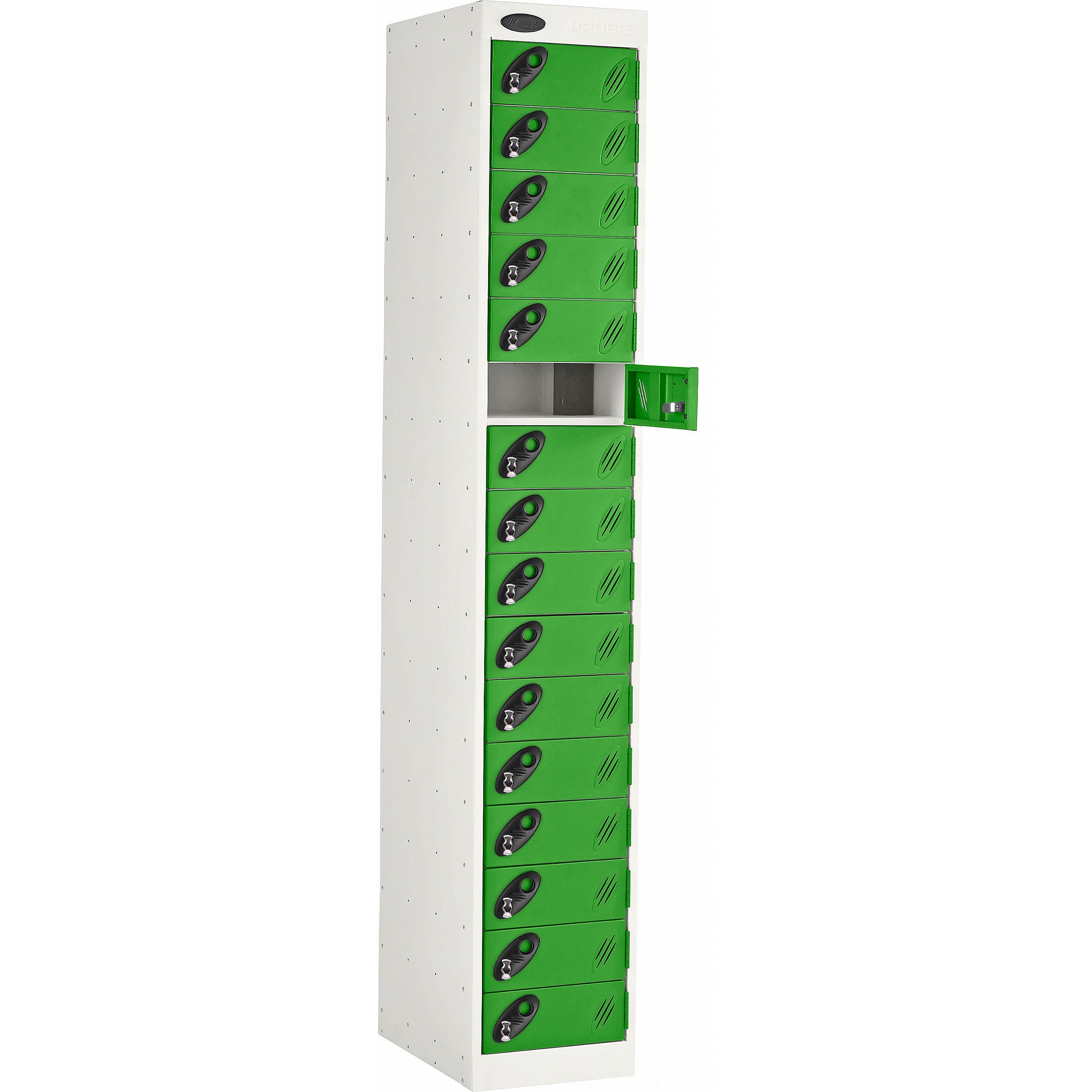 The Stellar PowerBox charging lockers from Probe are designed to provide a secure, reliable way to charge a wide range of electronic devices, including laptops, tablets, smartphones, radios, and body cameras, in both workplace and educational settings. Each compartment supports your choice of power delivery, with contents secured behind its own individual door. Perfect for use in universities, schools, warehouses, offices, test centres, and medical institutions. Manufactured in the UK, the Stellar PowerBox features ActiveCoat antibacterial powder coating, making it ideal for environments with the most stringent hygiene requirements. ActiveCoat inhibits the growth and transfer of harmful bacteria, mould, fungi, and algae, helping to maintain a clean and safe environment. For added peace of mind, these lockers include a 7-year manufacturer’s guarantee.Details