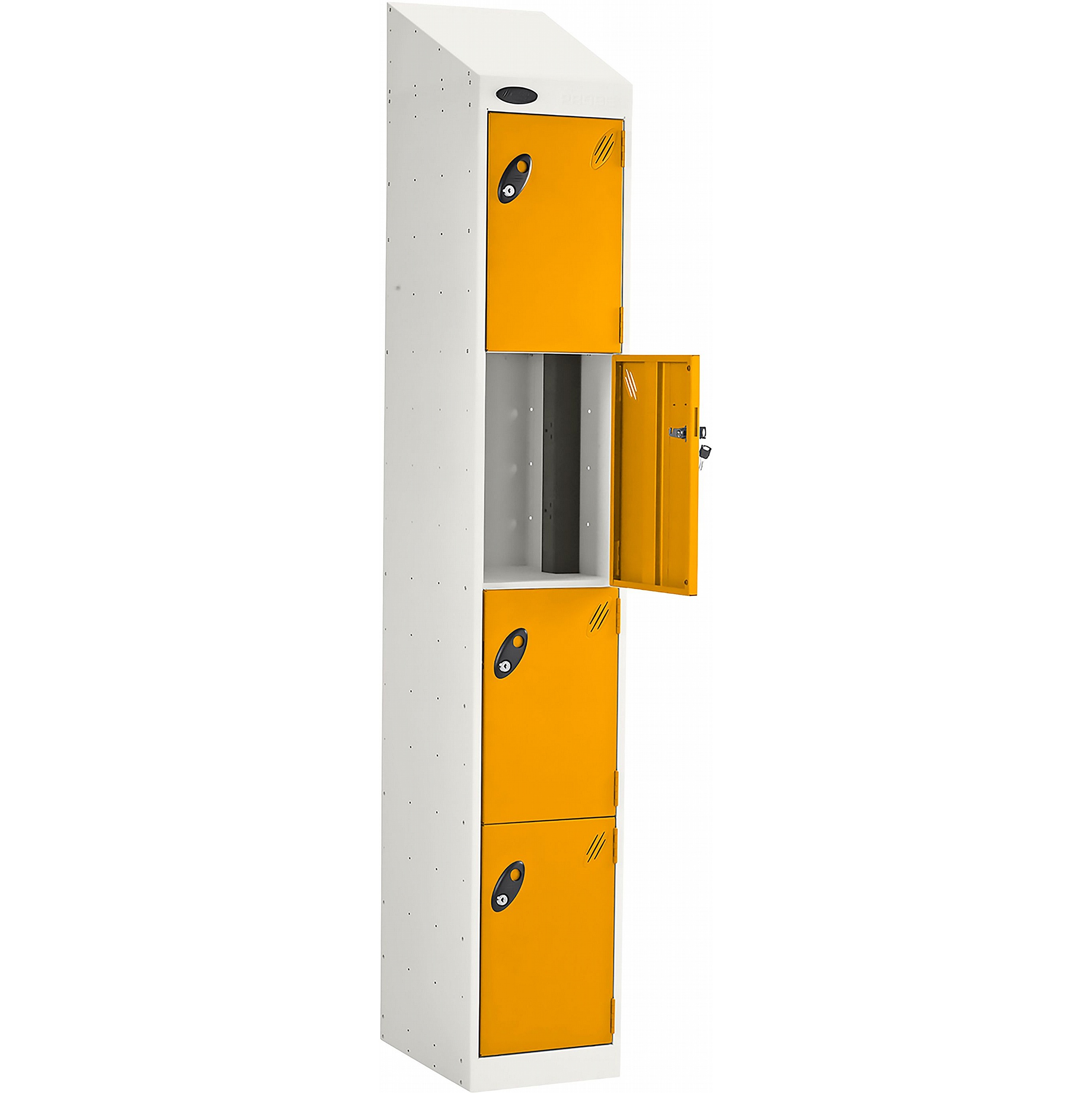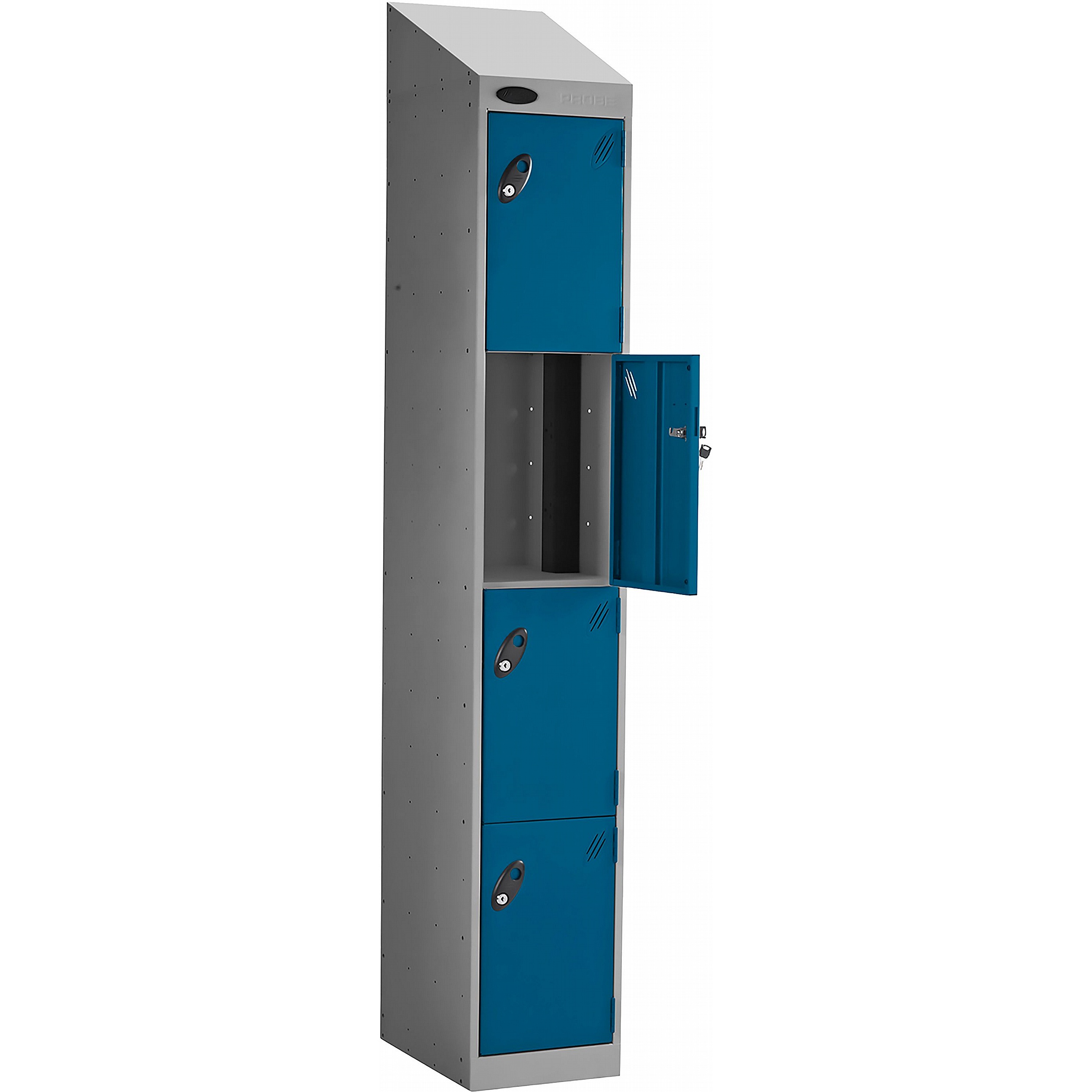 - The sloping top keeps the area tidy by making cleaning easier and preventing items from being placed and left on top of the locker.
