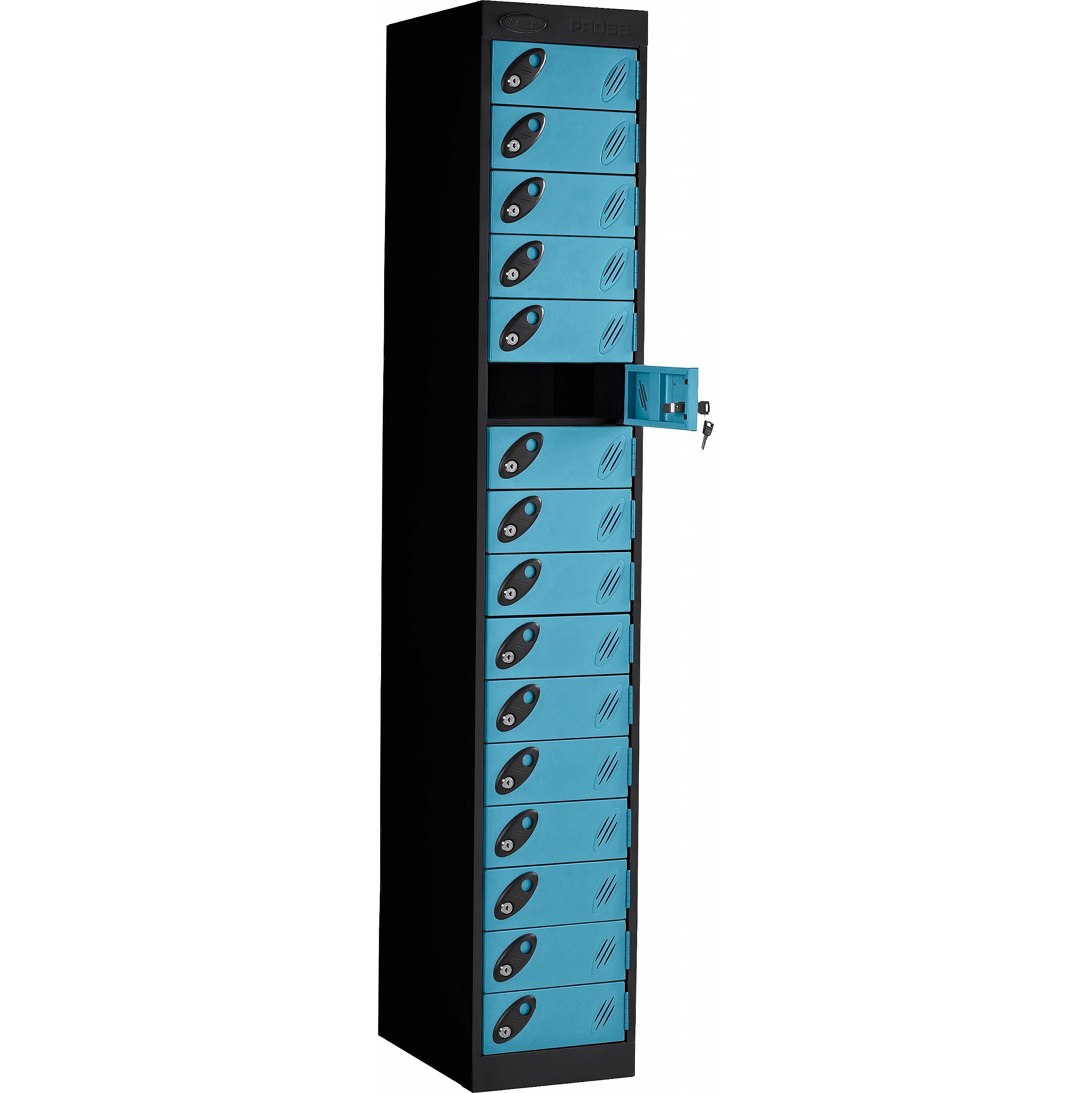 The Stellar PowerBox charging lockers from Probe are designed to provide a secure, reliable way to charge a wide range of electronic devices, including laptops, tablets, smartphones, radios, and body cameras, in both workplace and educational settings. Each compartment supports your choice of power delivery, with contents secured behind its own individual door. Perfect for use in universities, schools, warehouses, offices, test centres, and medical institutions. Manufactured in the UK, the Stellar PowerBox features ActiveCoat antibacterial powder coating, making it ideal for environments with the most stringent hygiene requirements. ActiveCoat inhibits the growth and transfer of harmful bacteria, mould, fungi, and algae, helping to maintain a clean and safe environment. For added peace of mind, these lockers include a 7-year manufacturer’s guarantee.Details