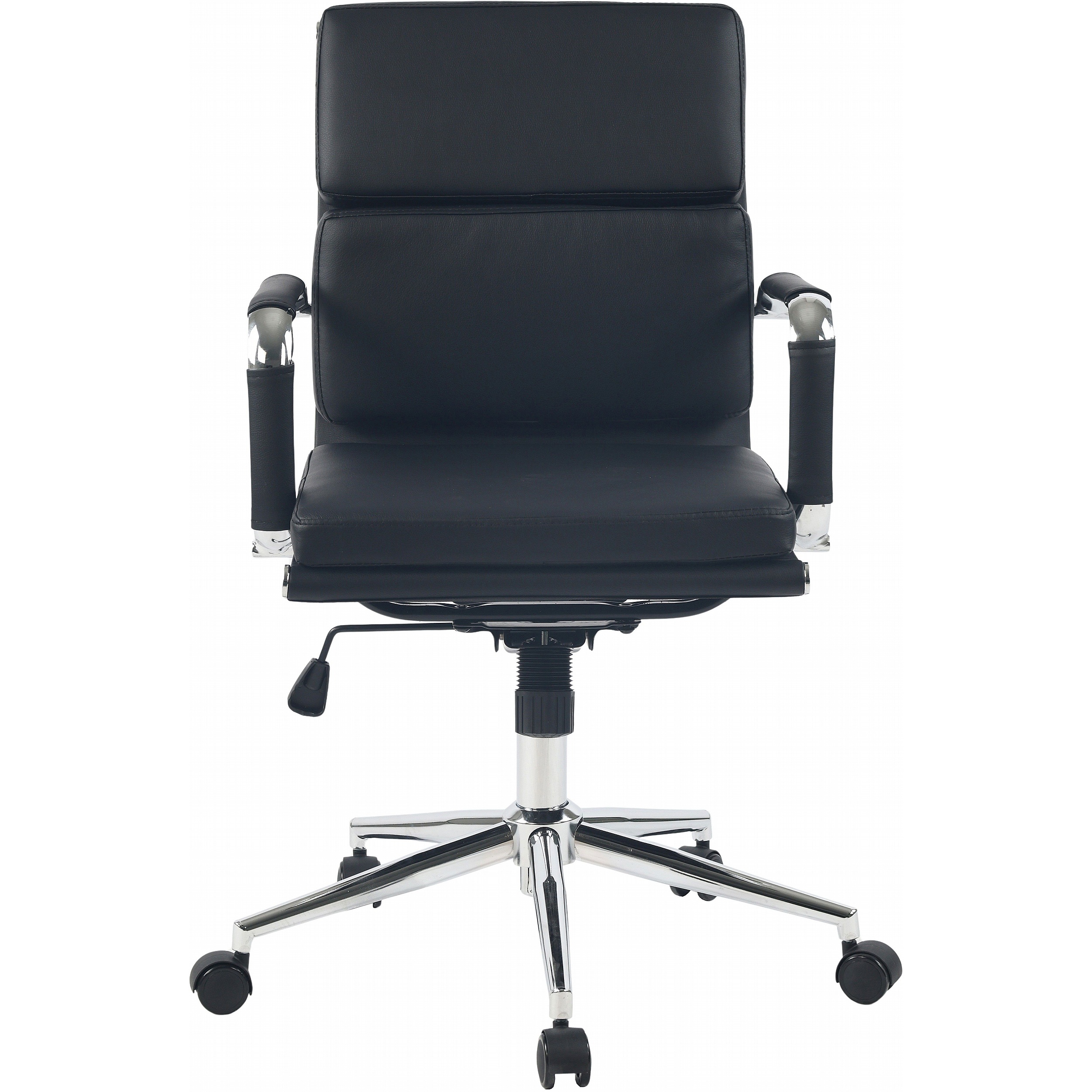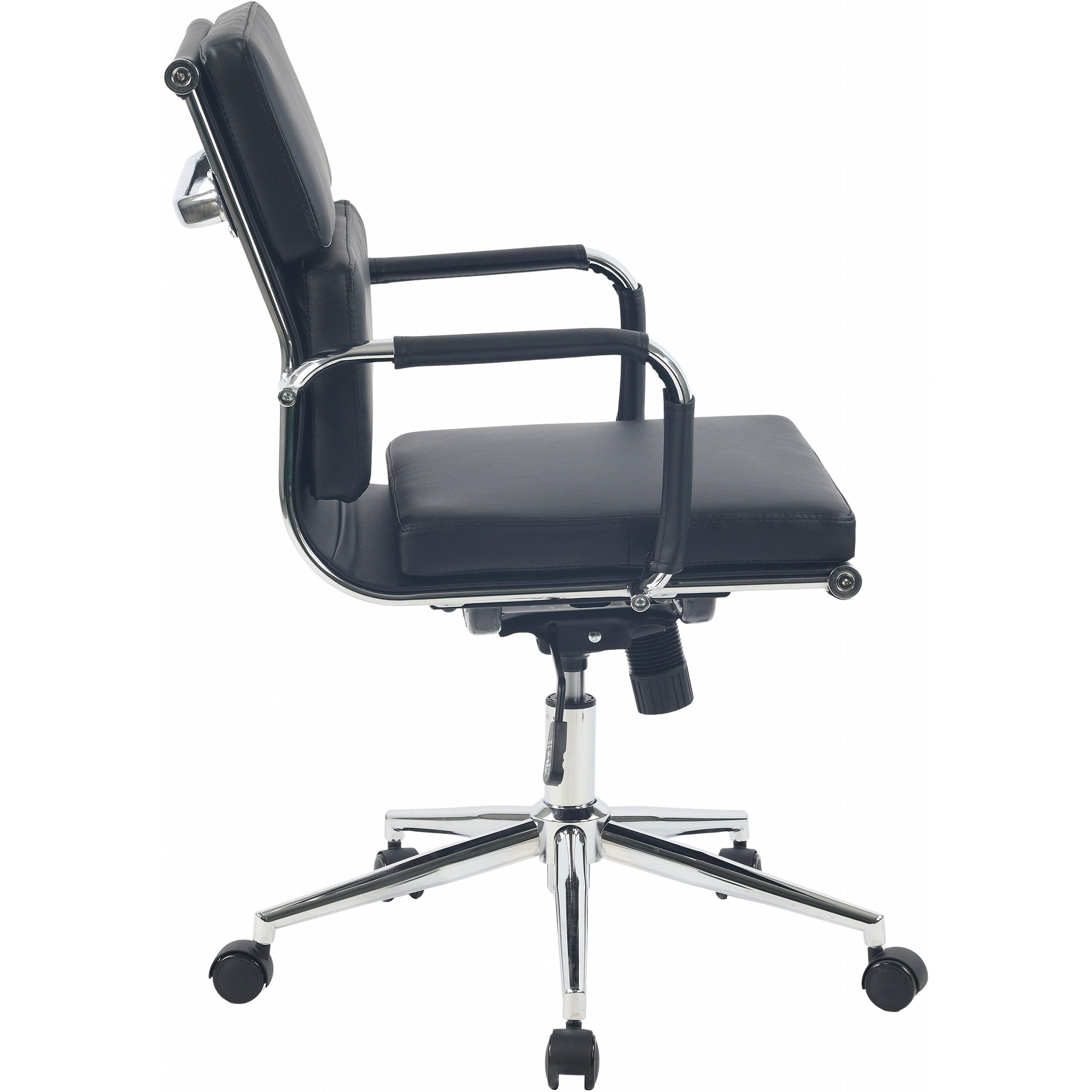 Are you ready to be a firestarter and trail blaze your workplace style? Look no further than the Prodigy executive medium back office chair. This cool, carefully thought out design uses ergonomic contouring to promote good posture while you sit. Its medium back make this chair the perfect partner for office, meeting or boardroom for complete flexibility. Prodigy comes upholstered in soft faux leather for a premium look without the price tag, and it’s finished in neutral black for a super smart finish that will elevate your space.Details