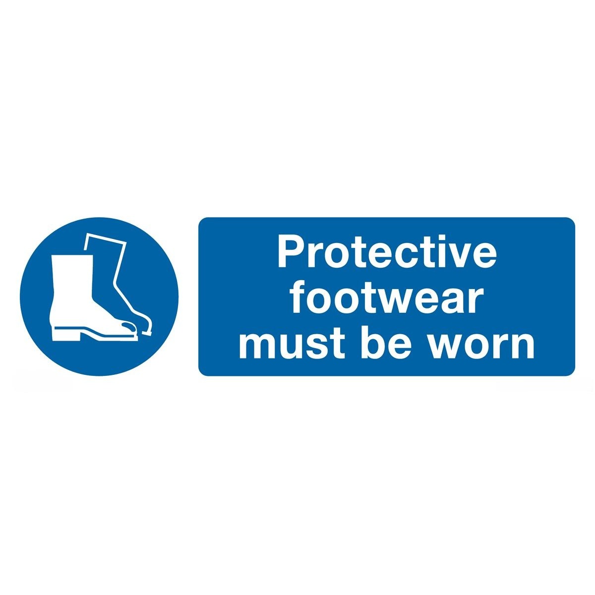 Remind staff, visitors, or contractors to follow essential safety protocols with this clear and durable self-adhesive sign. Measuring 300 × 100mm, it’s designed to be displayed in locations such as offices, workshops, and commercial spaces. Whether you're reminding workers to wear proper footwear or simply reinforcing workplace safety, with a white background these bold blue signs deliver a straightforward message that’s easy to spot and hard to ignore.Details