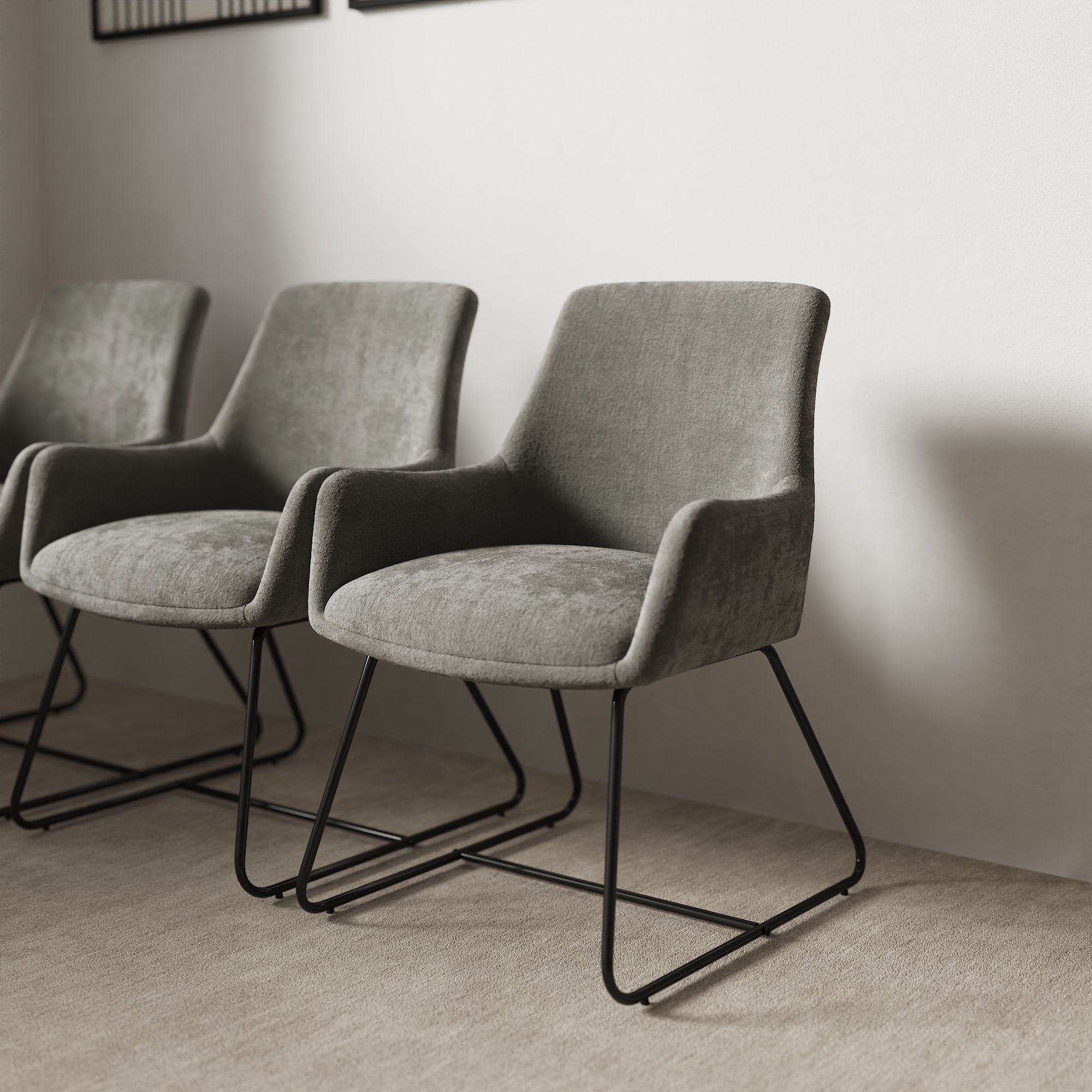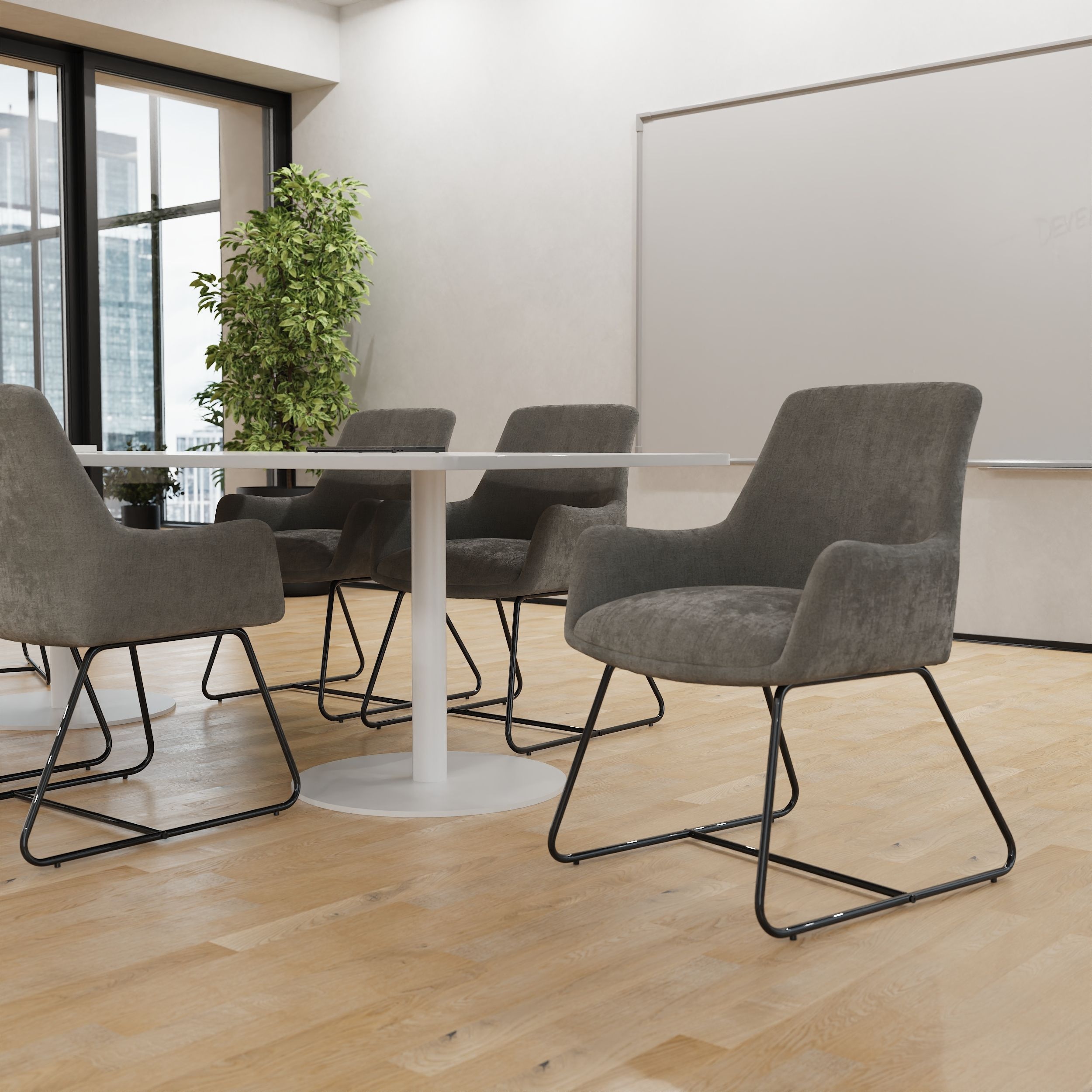 Quote Meeting & Breakout Chair is a quiet showstopper as it is subtle yet impossible to forget. A refined sled base brings a modern edge without overstatement. Quote adds sharpness, clarity, and a clean, confident look to any boardroom, studio, or reception environment. The smooth, sculpted form and grey brushed velvet finish offers everyday comfort wrapped in boutique hotel style.Details