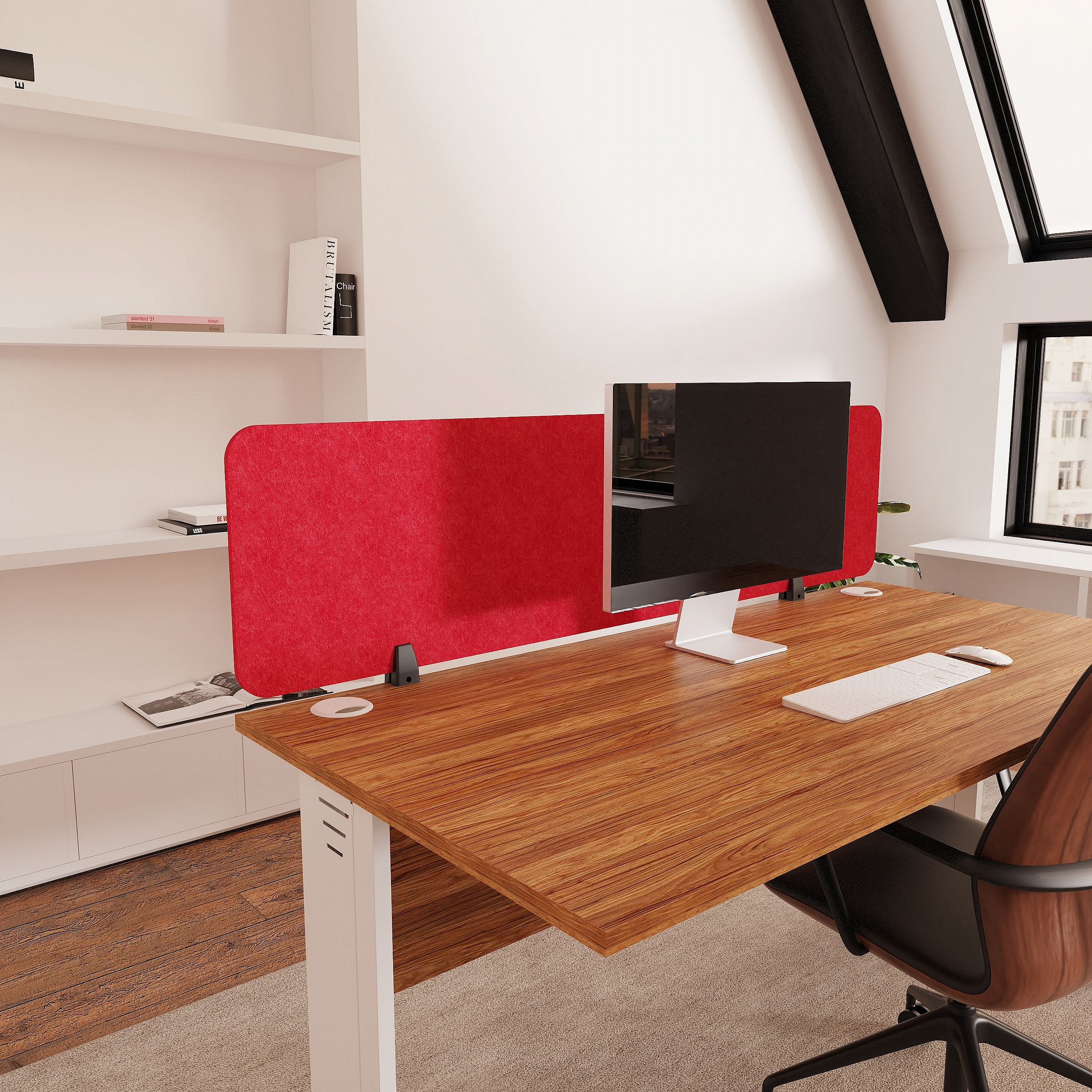 - Define workspaces and reduce distractions with these Sch! Acoustic desktop partition screens.