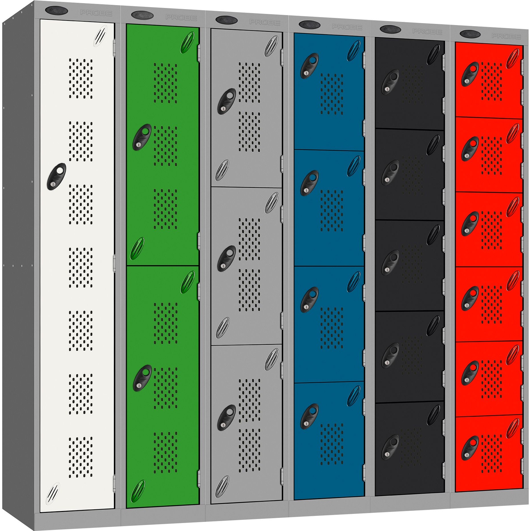 Stellar Probe antibacterial perforated door lockers deliver versatile compartment storage across a range of applications. Manufactured in the UK, Probe lockers feature ActiveCoat antibacterial powder coating for use within the most stringent hygienic environments. This helps prevent the growth and transfer of potentially harmful bacteria, mould, fungi, algae etc. Stellar compartment lockers are widely used in schools, further education, retail premises and offices to take care of personal storage needs. And, for peace of mind these lockers include a 7 year manufacturers guarantee.Details