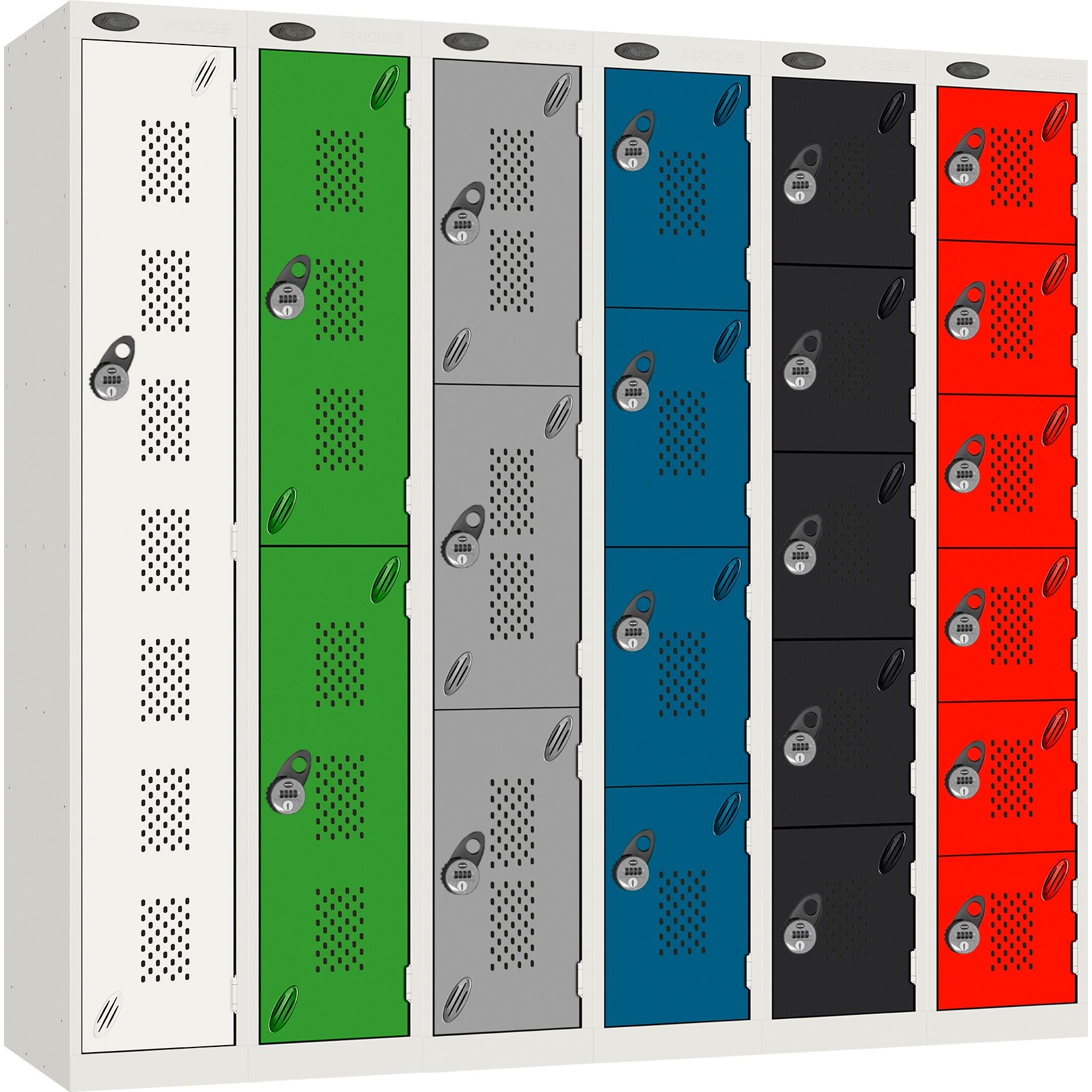 Stellar Probe antibacterial perforated door lockers deliver versatile compartment storage across a range of applications. Manufactured in the UK, Probe lockers feature ActiveCoat antibacterial powder coating for use within the most stringent hygienic environments. This helps prevent the growth and transfer of potentially harmful bacteria, mould, fungi, algae etc. Stellar compartment lockers are widely used in schools, further education, retail premises and offices to take care of personal storage needs. And, for peace of mind these lockers include a 7 year manufacturers guarantee.- Support British manufacturing with Stellar compartment lockers.