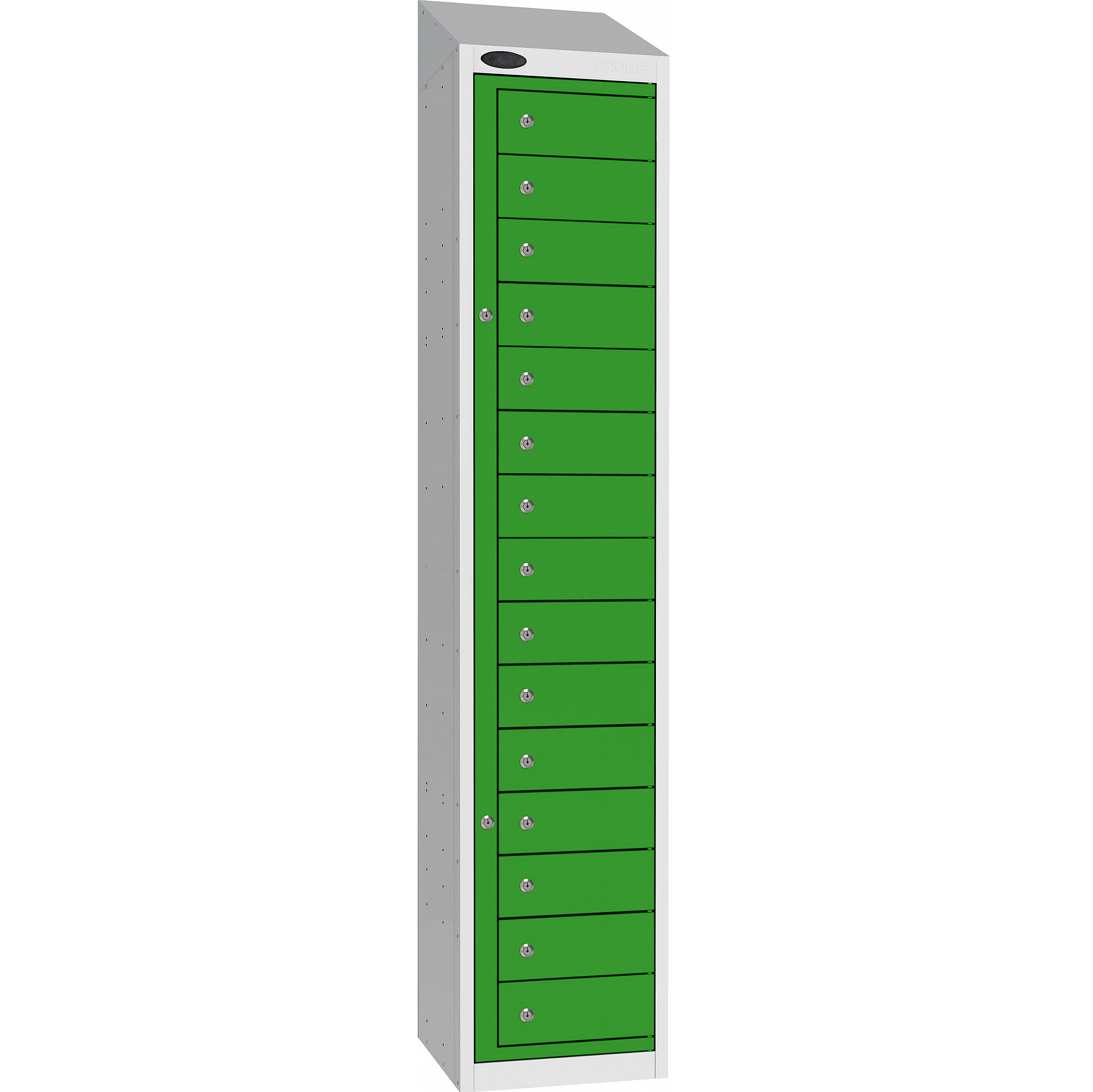 - The sloping top keeps the area tidy by making cleaning easier and preventing items from being placed and left on top of the locker.
