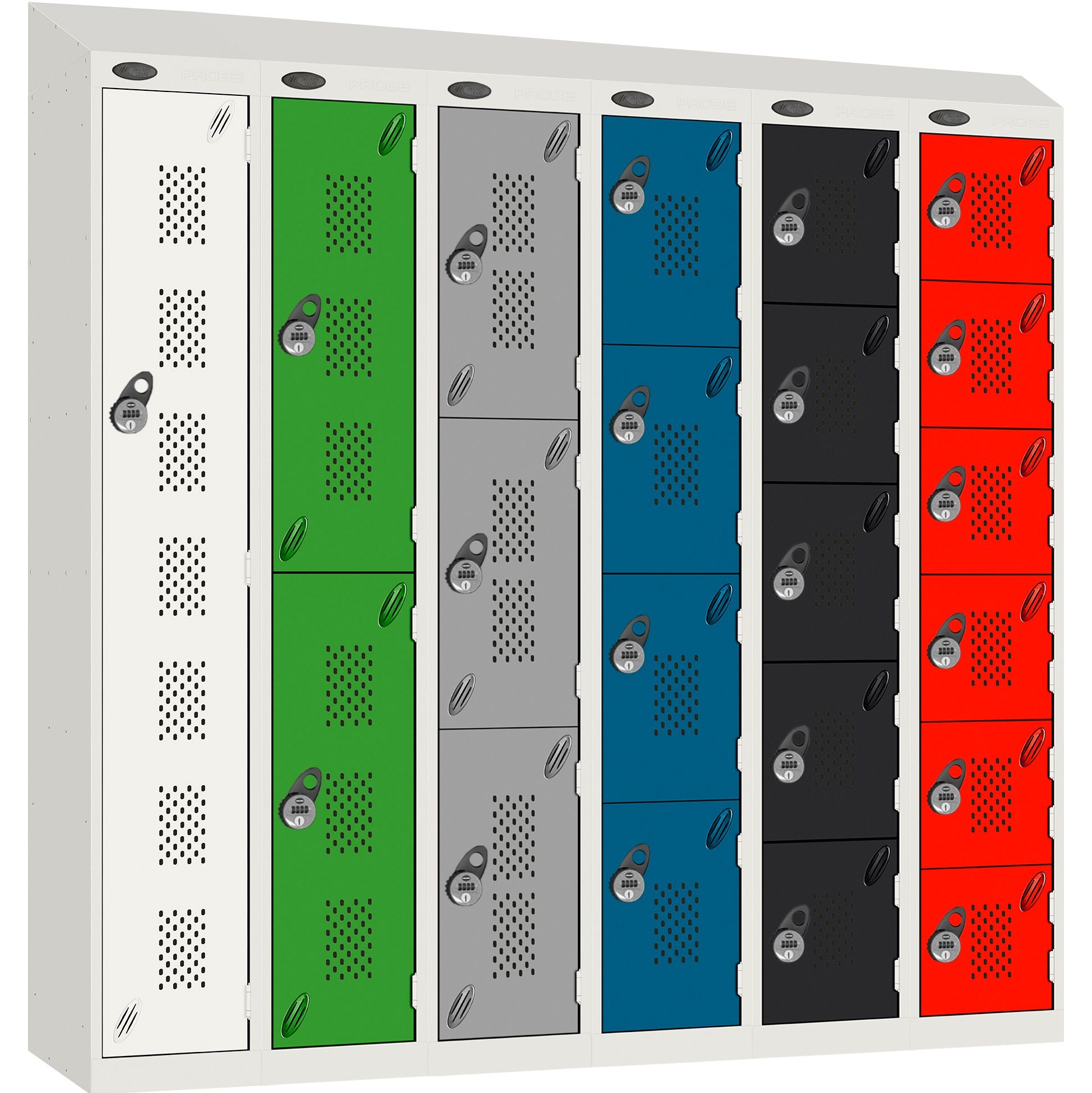 Stellar Probe antibacterial perforated door lockers deliver versatile compartment storage across a range of applications. Manufactured in the UK, Probe lockers feature ActiveCoat antibacterial powder coating for use within the most stringent hygienic environments. This helps prevent the growth and transfer of potentially harmful bacteria, mould, fungi, algae etc. Stellar compartment lockers are widely used in schools, further education, retail premises and offices to take care of personal storage needs. And, for peace of mind these lockers include a 7 year manufacturers guarantee.Details