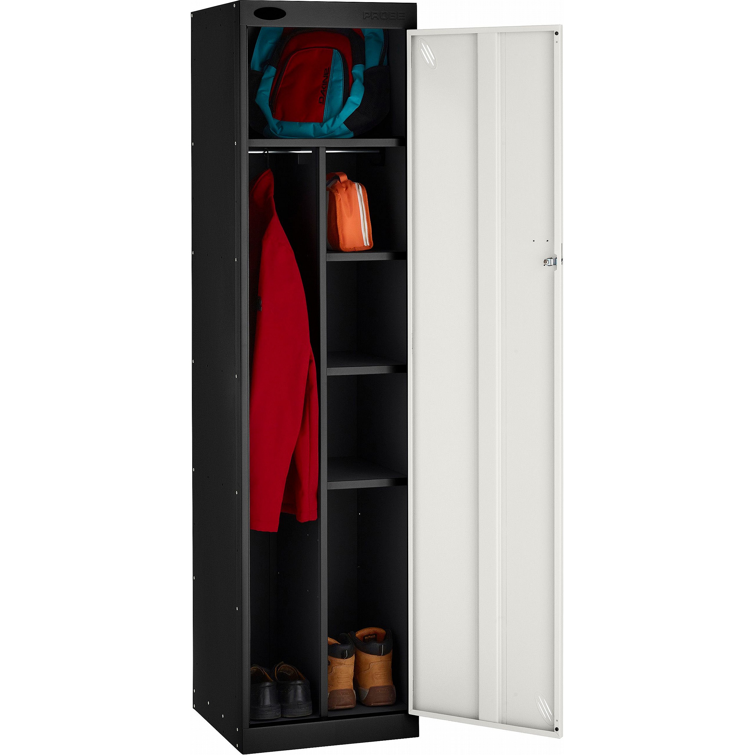 Stellar Probe antibacterial uniform lockers have been designed to provide a structured storage solution for workwear, PPE, and day to day workplace equipment. The lockers contain six compartments in total: one full-width top shelf for headwear and bags, one vertical hanging compartment for garments, and four smaller sections for additional items such as equipment and footwear. Manufactured in the UK, Probe lockers feature ActiveCoat antibacterial powder coating for use within the most stringent hygienic environments. This helps prevent the growth and transfer of potentially harmful bacteria, mould, fungi, algae etc. And, for peace of mind, these lockers include a 7-year manufacturers guarantee.Details