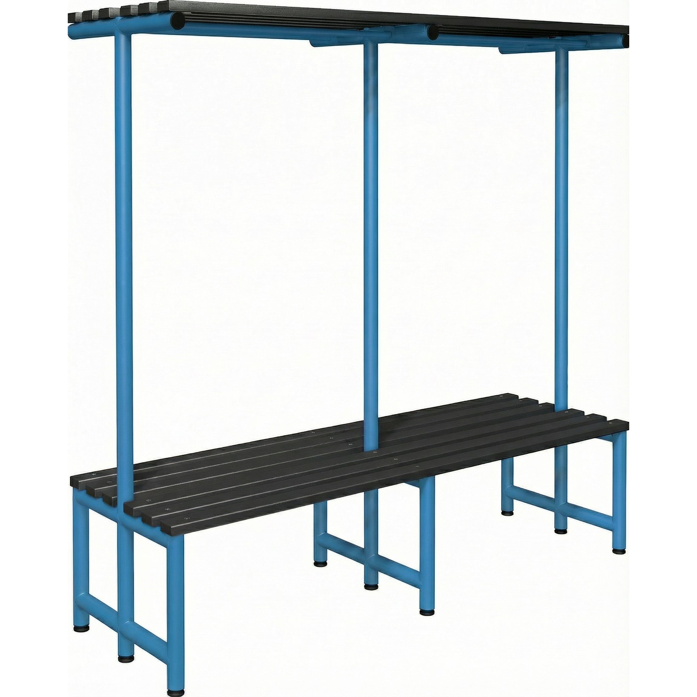 The Stellar Probe changing and cloakroom range is perfect for creating, upgrading, or enhancing communal changing areas with durable, hygienic furniture built to withstand heavy daily use. Manufactured right here in the UK, this range features ActiveCoat antibacterial powder coating that inhibits bacterial growth, helping maintain a cleaner, more hygienic environment. These double sided benches combine comfortable seating with an overhead hanging rail and shelf, providing a complete changing solution in one freestanding unit. The black polymer slats and overhead shelf are hardwearing, easy to clean, and simple to maintain. And for total peace of mind, these benches include a 7 year manufacturer's guarantee.Details