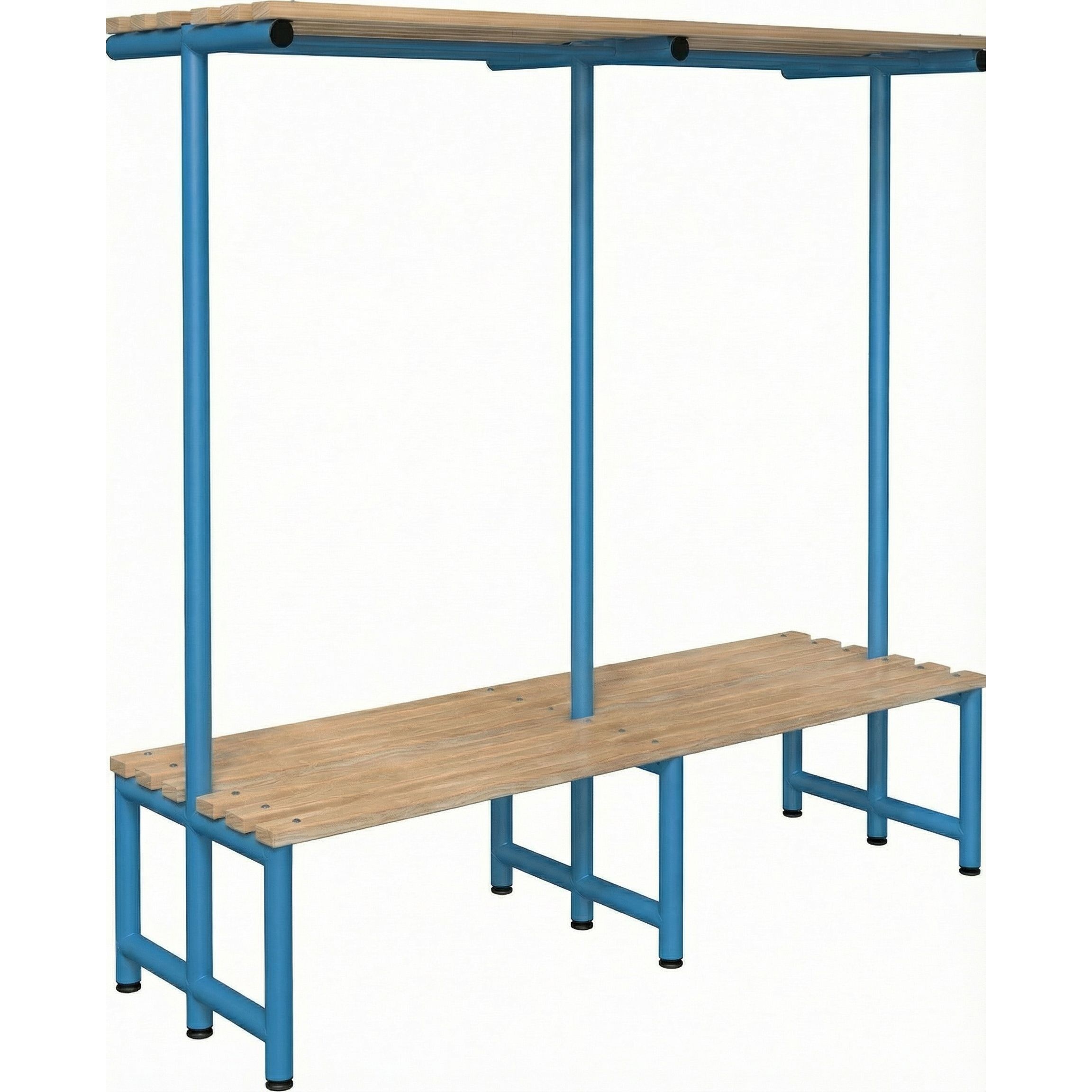The Stellar Probe changing and cloakroom range is perfect for creating, upgrading, or enhancing communal changing areas with durable, hygienic furniture built to withstand heavy daily use. Manufactured right here in the UK, this range features ActiveCoat antibacterial powder coating that inhibits bacterial growth, helping maintain a cleaner, more hygienic environment. These double sided benches combine comfortable seating with an overhead hanging rail and shelf, providing a complete changing solution in one freestanding unit. The beech wood slats and overhead shelf are hardwearing, easy to clean, and simple to maintain. And for total peace of mind, these benches include a 7 year manufacturer's guarantee.Details