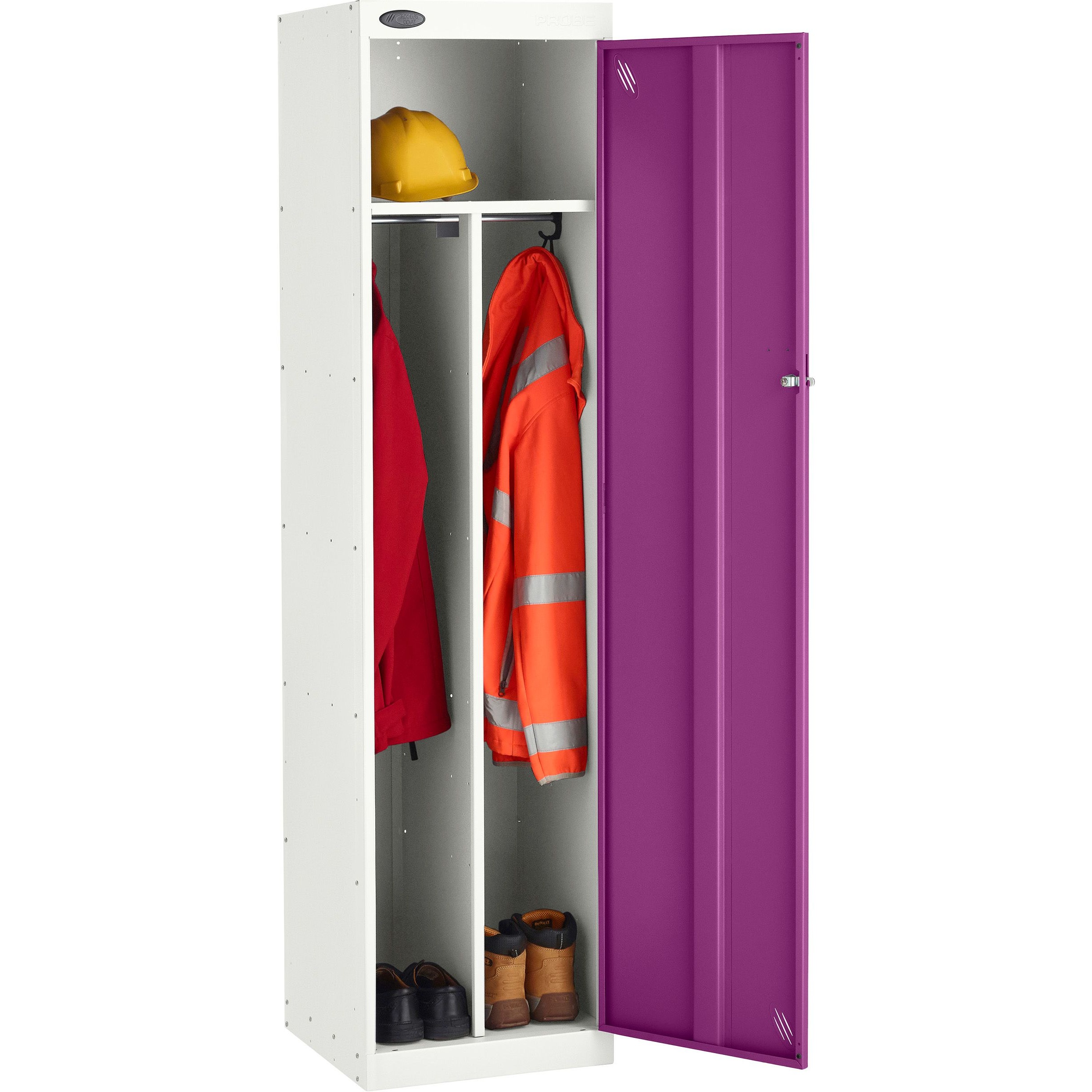 Stellar Probe antibacterial clean & dirty lockers provide secure compartment storage, keeping clean items separate from dirty workwear. Each locker has three compartments: a full-width top shelf ideal for headwear and accessories, and two tall vertical sections, both fitted with a hanging rail and coat hook to keep clean clothing and dirty workwear neatly apart. Manufactured in the UK, Probe lockers feature ActiveCoat antibacterial powder coating for use within the most stringent hygienic environments. This helps prevent the growth and transfer of potentially harmful bacteria, mould, fungi, algae etc. And, for peace of mind, these lockers include a 7-year manufacturers guarantee.Details