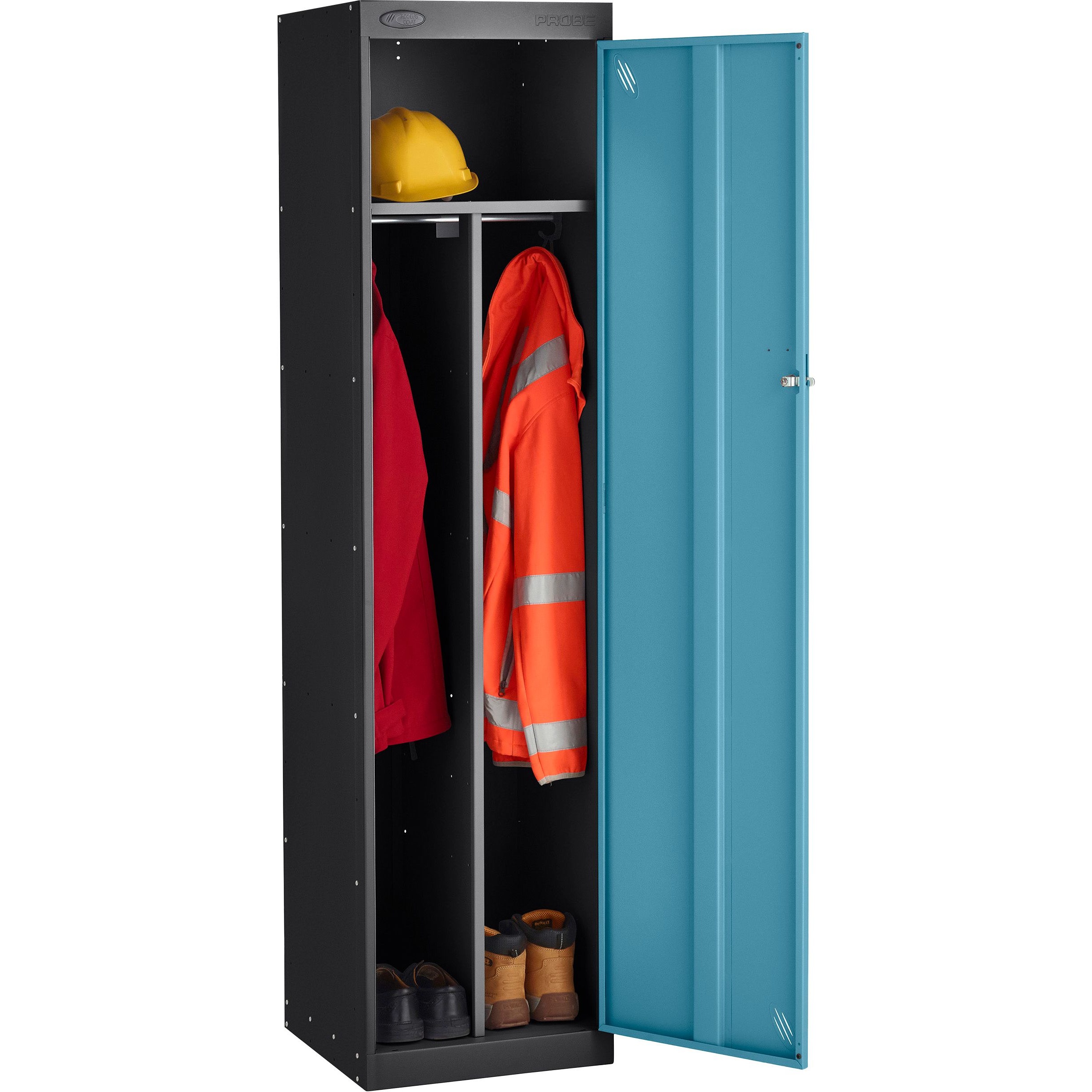 Stellar Probe antibacterial clean & dirty lockers provide secure compartment storage, keeping clean items separate from dirty workwear. Each locker has three compartments: a full-width top shelf ideal for headwear and accessories, and two tall vertical sections, both fitted with a hanging rail and coat hook to keep clean clothing and dirty workwear neatly apart. Manufactured in the UK, Probe lockers feature ActiveCoat antibacterial powder coating for use within the most stringent hygienic environments. This helps prevent the growth and transfer of potentially harmful bacteria, mould, fungi, algae etc. And, for peace of mind, these lockers include a 7-year manufacturers guarantee.Details