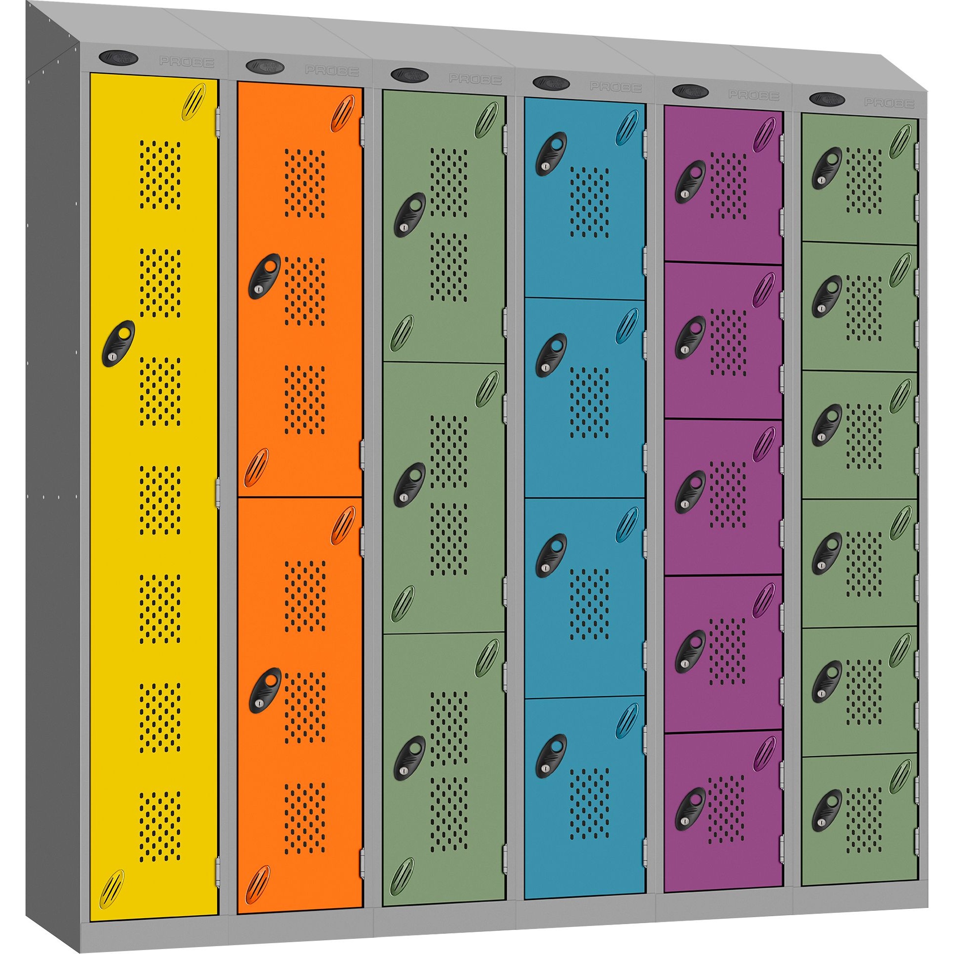 Stellar Probe Equinox Antibacterial Sloping Top Perforated Door Lockers with Coin Return Lock