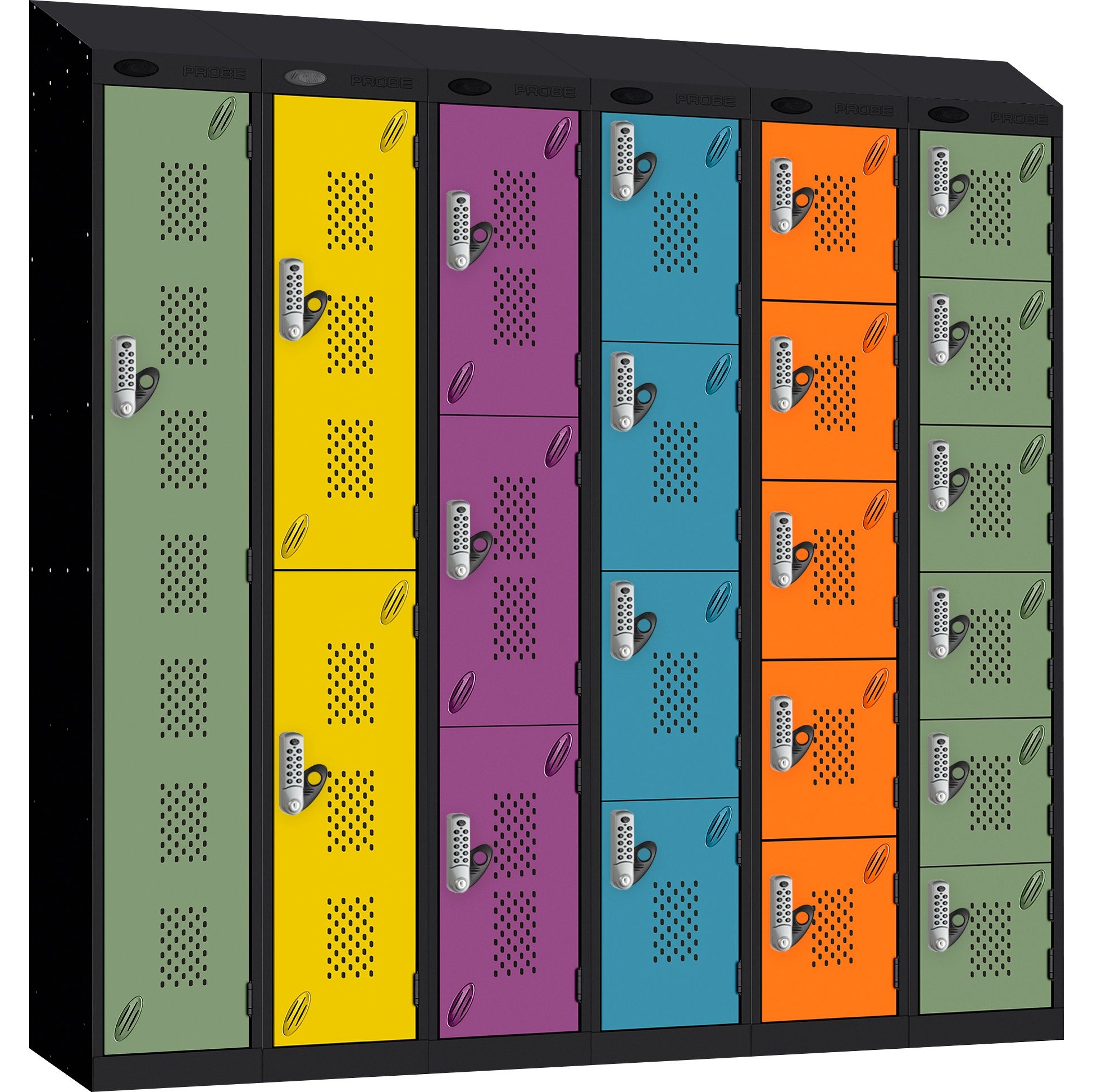 Stellar Probe Equinox Antibacterial Sloping Top Perforated Door Lockers with Digital Combination Lock