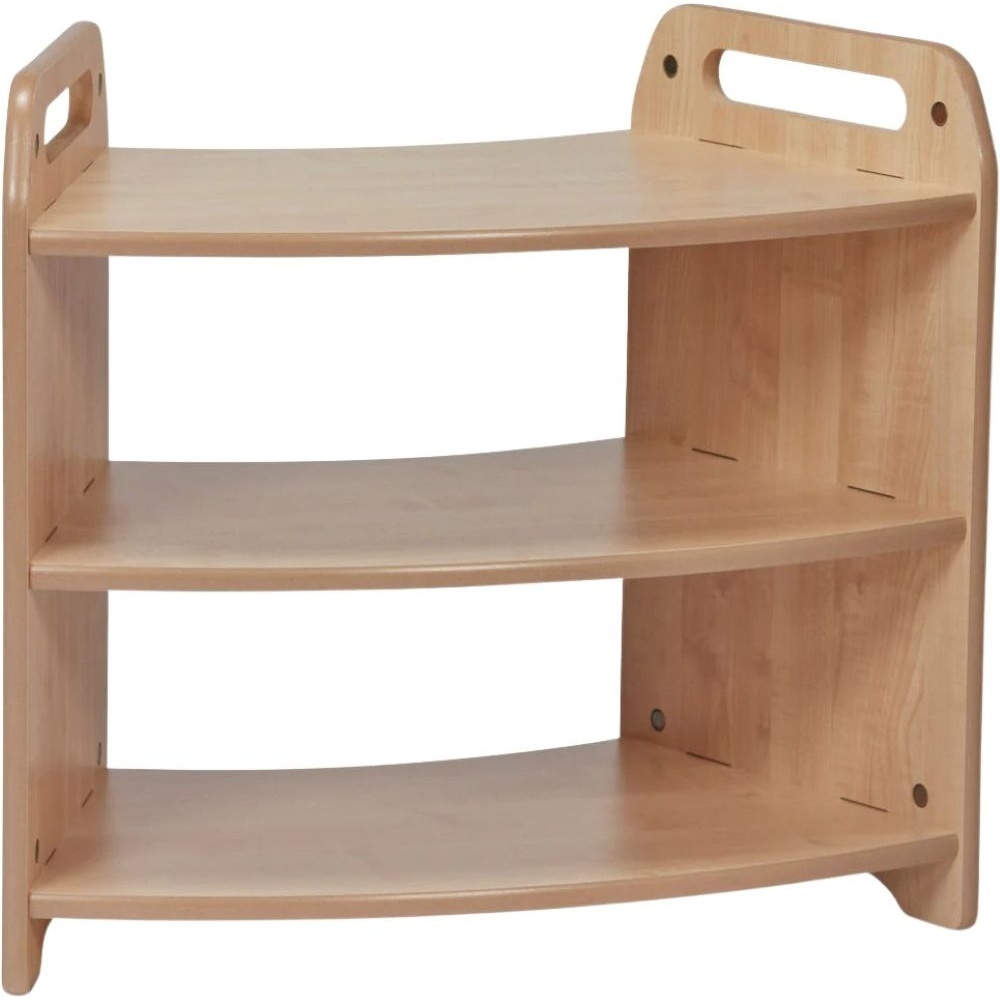 The Tidy Tots 45 Degree Curved Open Bookcases are designed to create smooth, flowing storage zones that support independent browsing and tidy-up routines. Their gentle curved shape helps define learning areas while keeping books and resources clearly visible and easy for young children to access. With a warm maple finish and open, child-friendly layout, they blend naturally into calm and inviting early years environments.Details