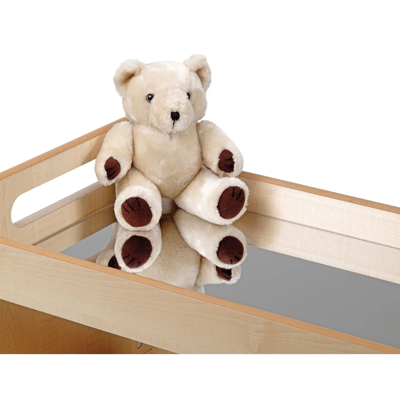 - A removable safety mirror sits between the raised ledges to help build curiosity and enhance play.