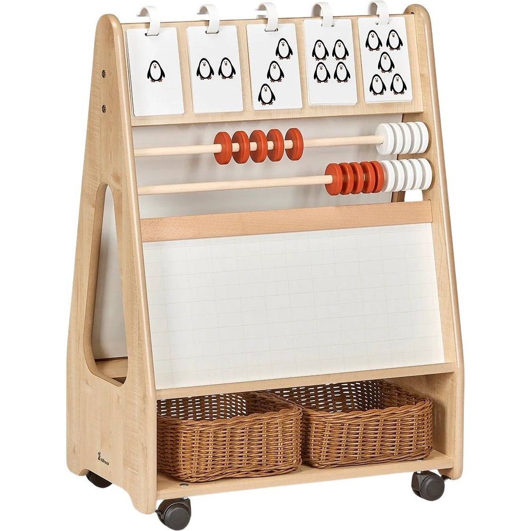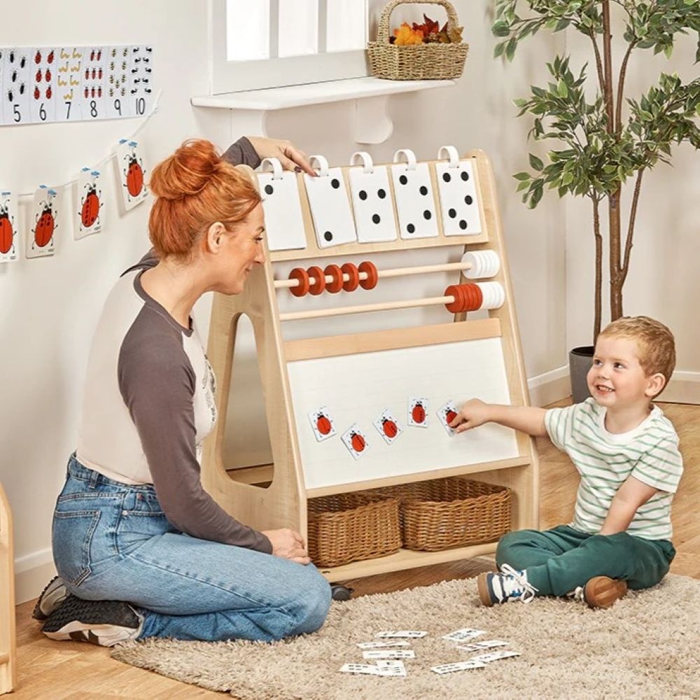 - Magnetic whiteboard surfaces on both sides offer space for mark making, number formation, and magnetic resources.