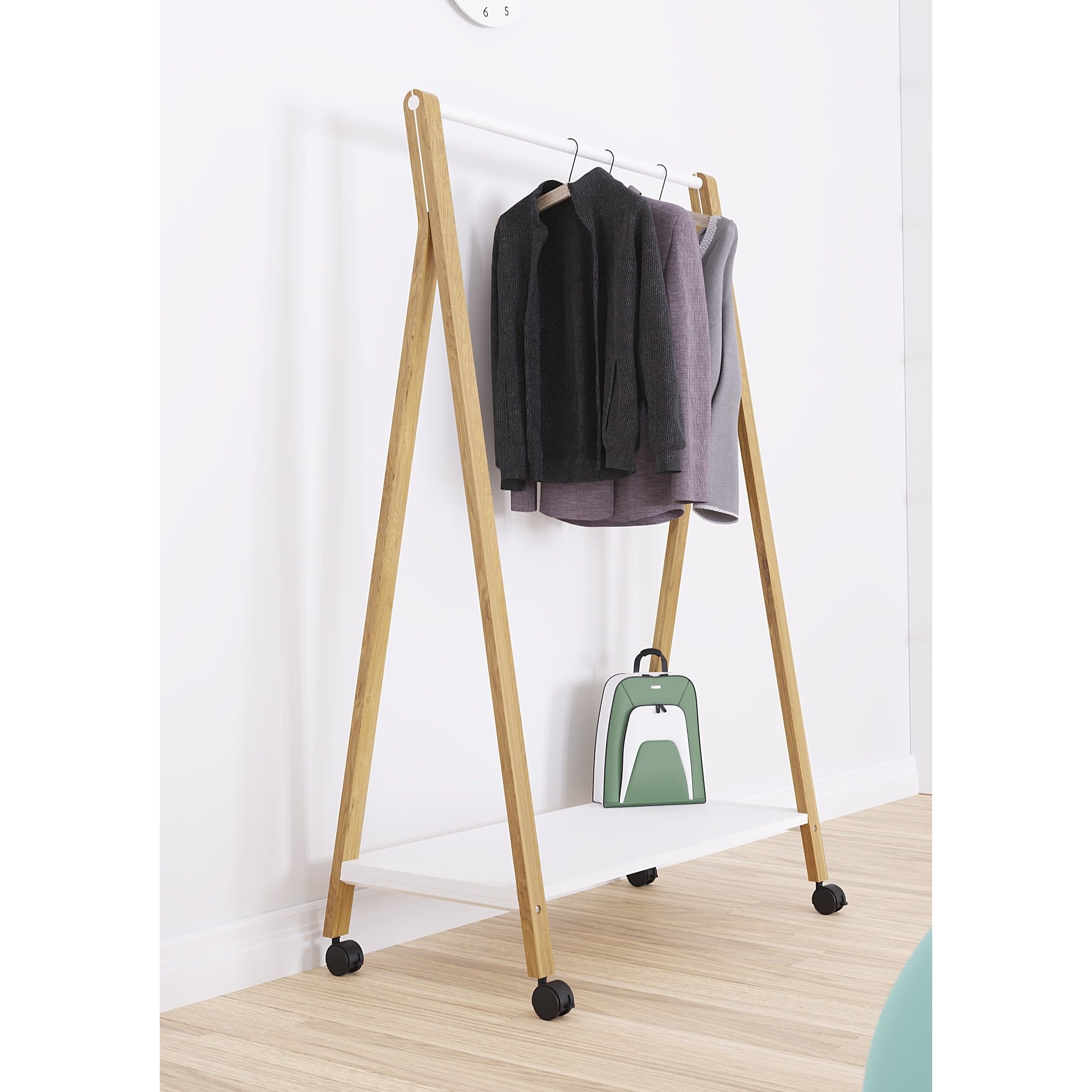 - This mobile rail offers a generous hanging capacity, comfortably supporting 10–12 standard coats or jackets.