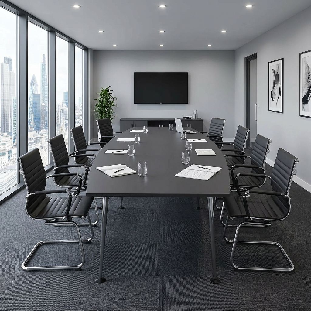 Furnish your boardroom or meeting room in style with the Pegasus table from Boss Design. One of the UK’s premium furniture manufacturers. Sustainability has always been at the heart of Boss designs philosophy and day-to-day culture. Their goal is to protect the environment through sustainable manufacturing and create a better and more prosperous society to live in. The Pegasus table features a robust and elegant metal underframe and legs, providing both stability and style. The refined barrel desktop is available in a range of sizes and finishes to suit your specific needs. Pegasus, put simply, is a versatile centrepiece that combines durability, practicality, and timeless style. To top it all off, we’ve included delivery and installation for a no fuss, premium service.Details