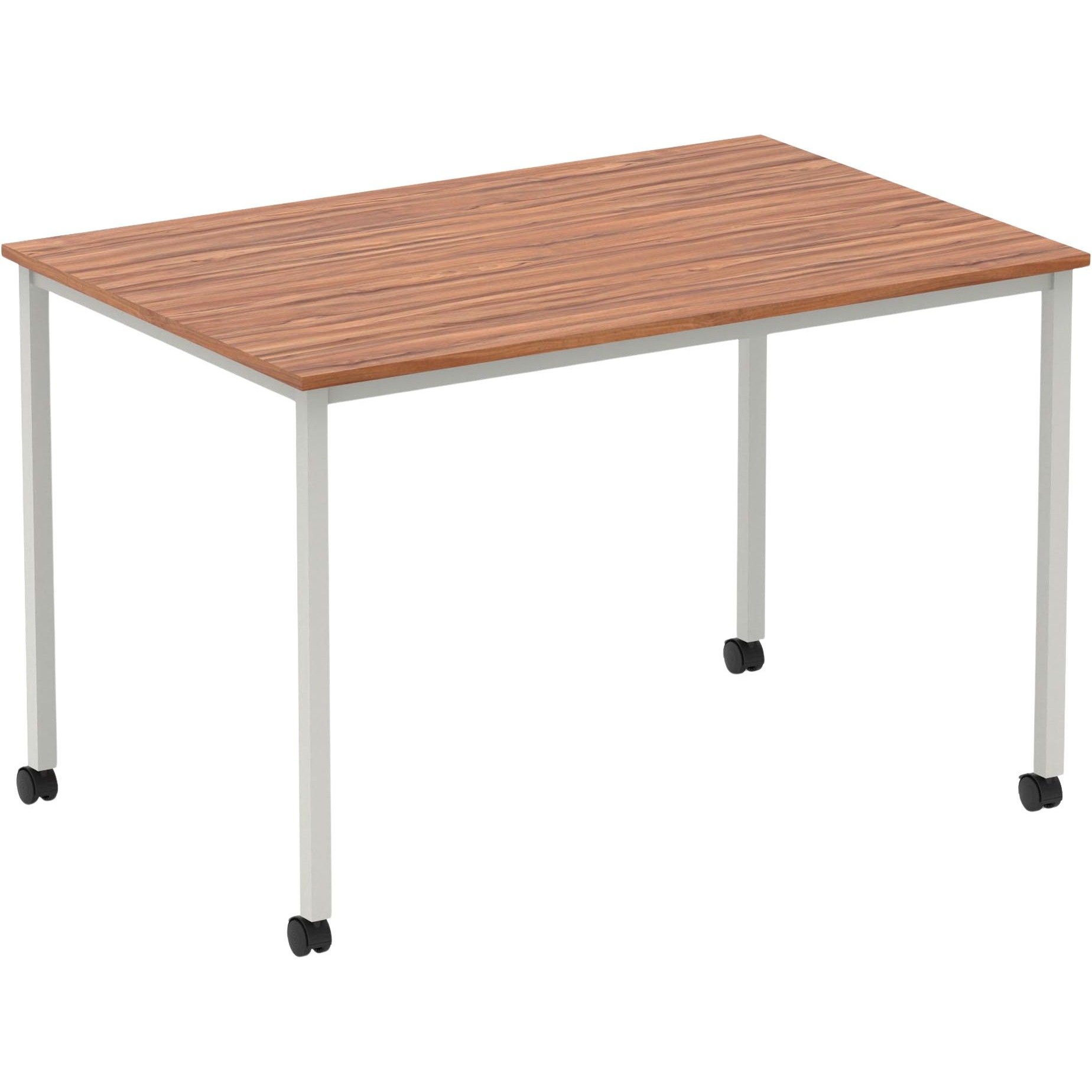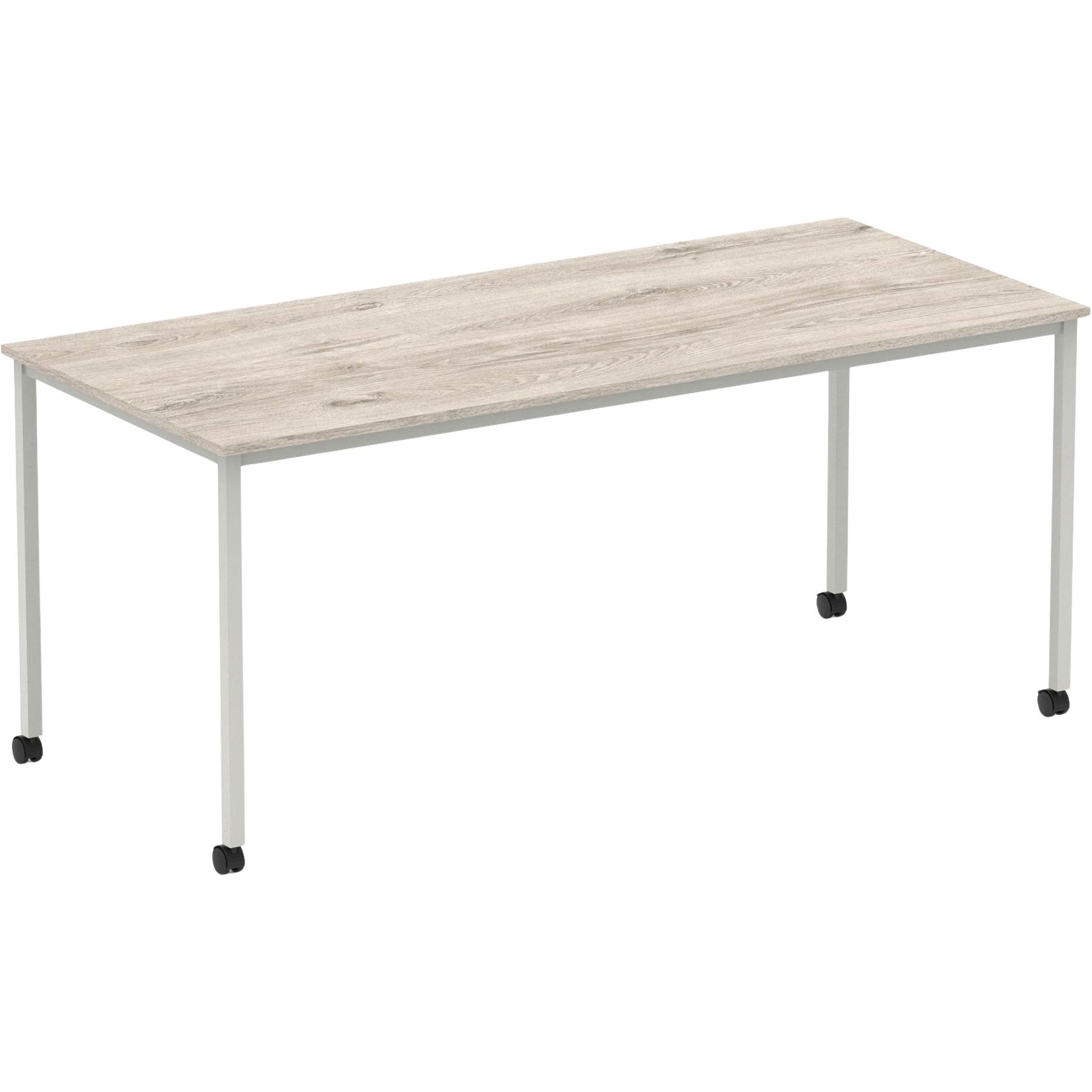 - Top is paired with simple silver coated box frame legs and castors for easy manoeuvrability.