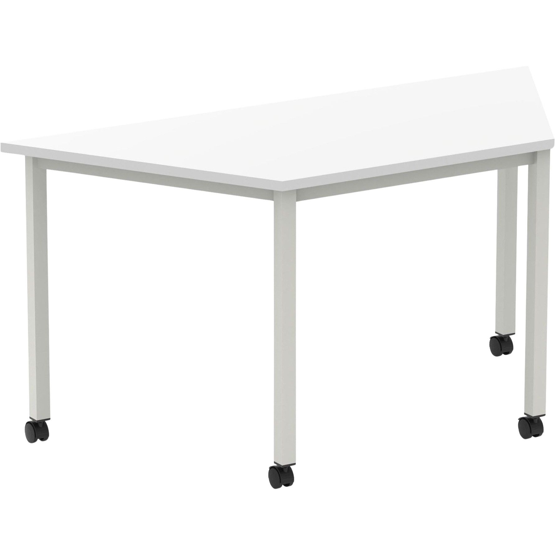 - 18mm thick trapezium tabletop in wipe clean melamine features impact resistant edging.
