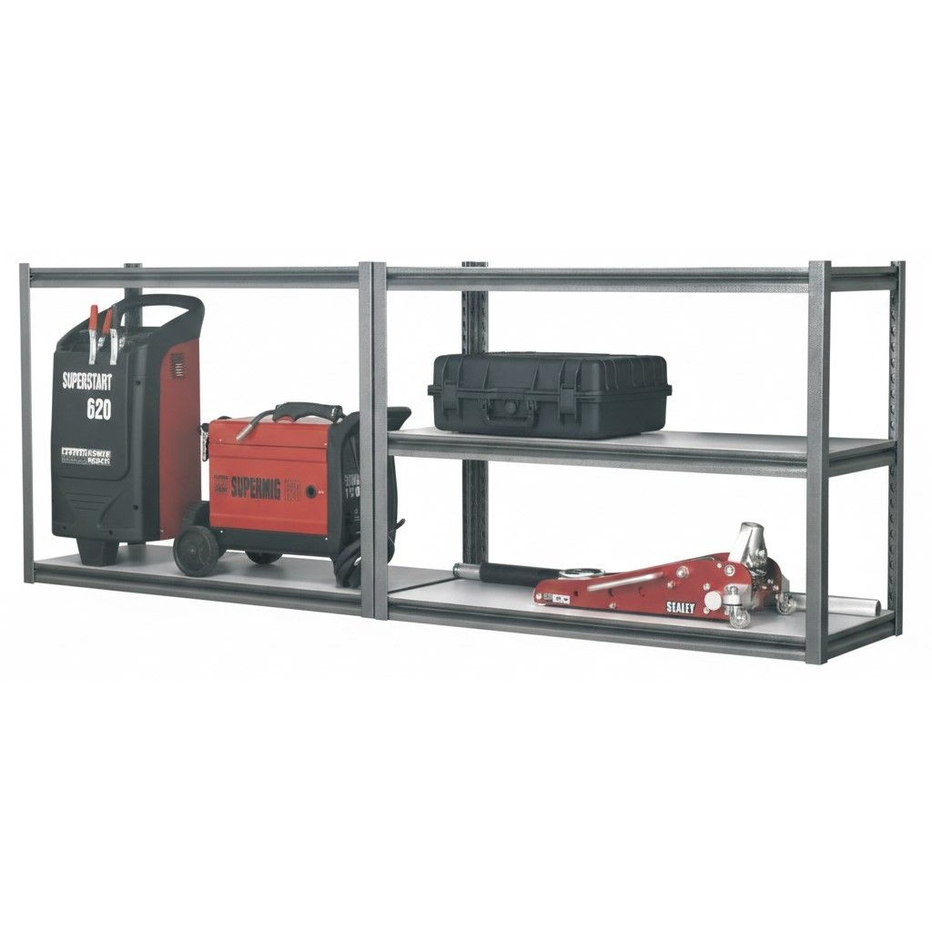 This heavy duty racking system is built for demanding workshops, garages, and trade environments where exceptional strength and simple assembly are essential. It offers a reliable way to store bulky tools, machinery, and boxed equipment without the need for bolts or complicated fittings. Each shelf supports substantial weight, making it suitable for professional users who need dependable, long lasting storage. The flexible upright design also gives you the option to build it as one tall unit or divide it into two smaller workstations.Details