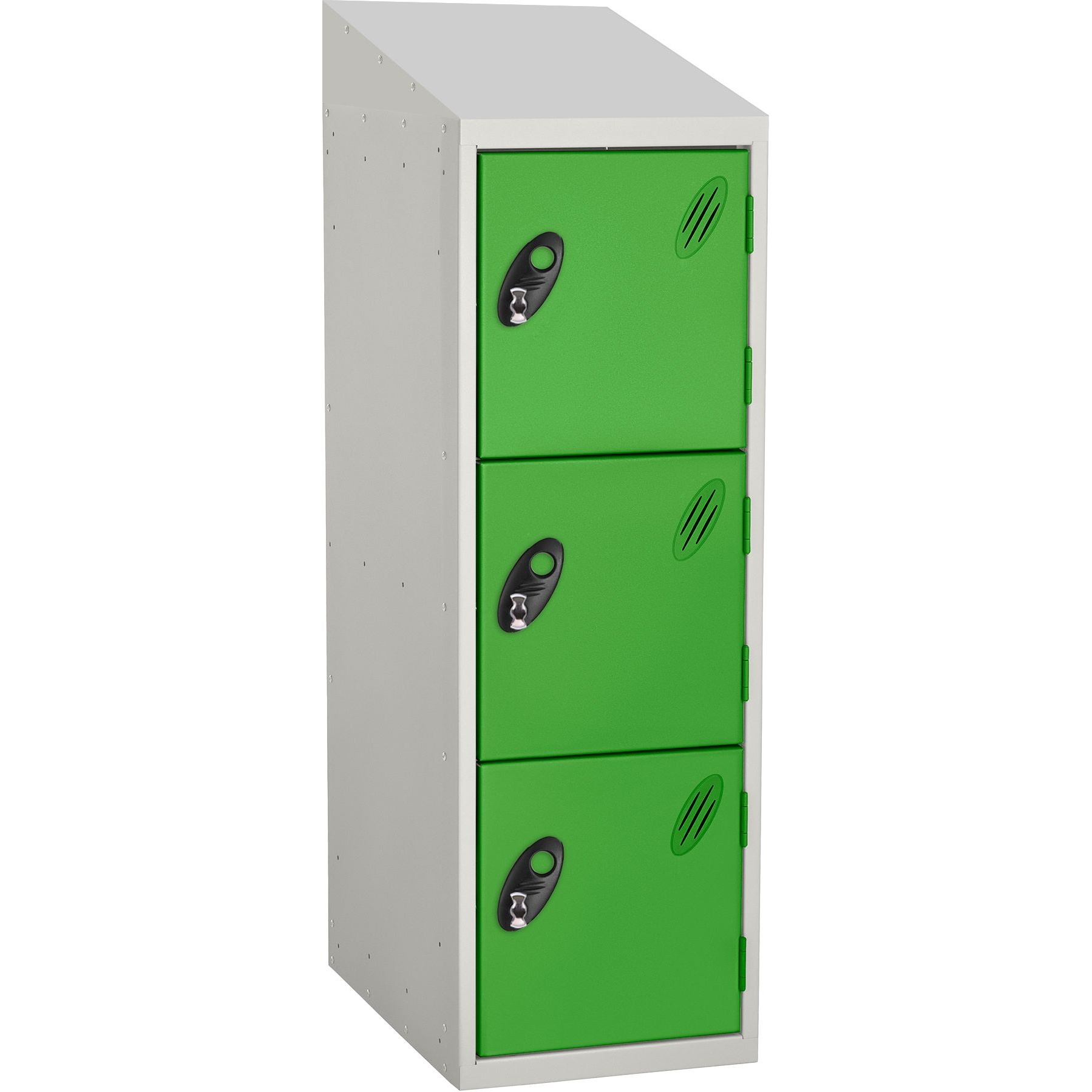 - The sloping top keeps the area tidy by making cleaning easier and preventing items from being placed and left on top of the locker.