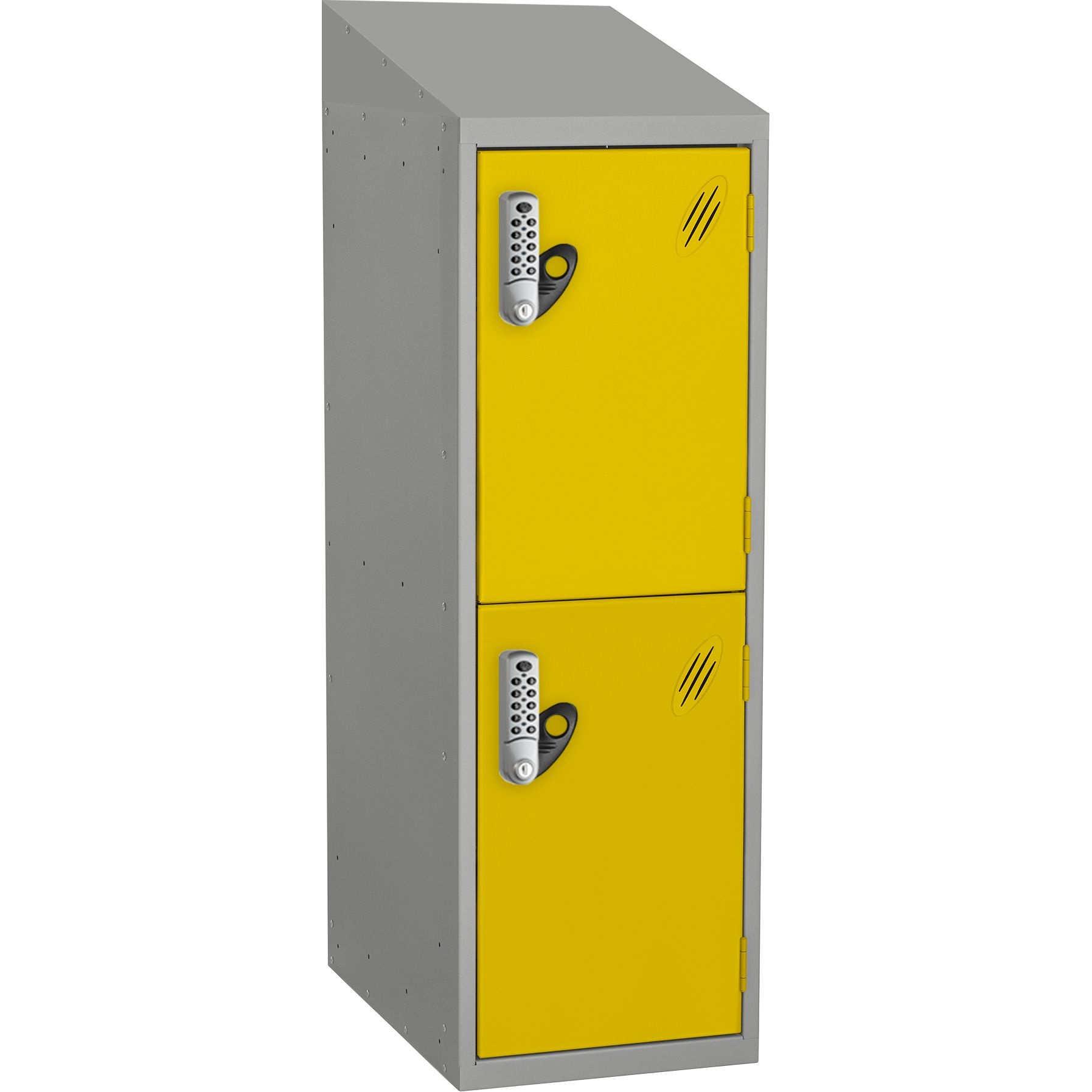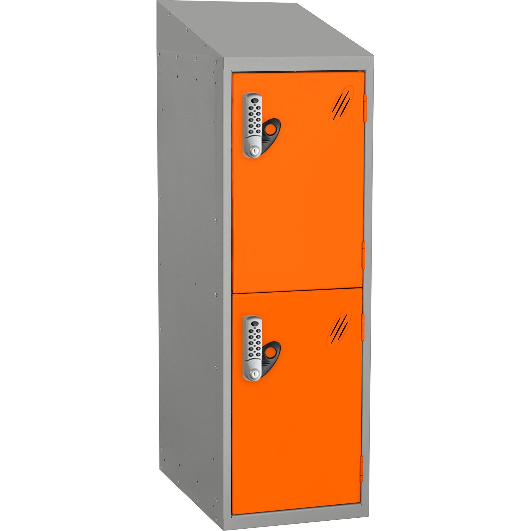 - The sloping top keeps the area tidy by making cleaning easier and preventing items from being placed and left on top of the locker.